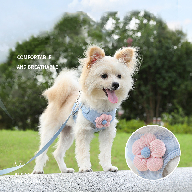 Cachorro Coleira Peitoral Com Guia Para Cães Colete Gatos Respirável Com Decoração De Flores