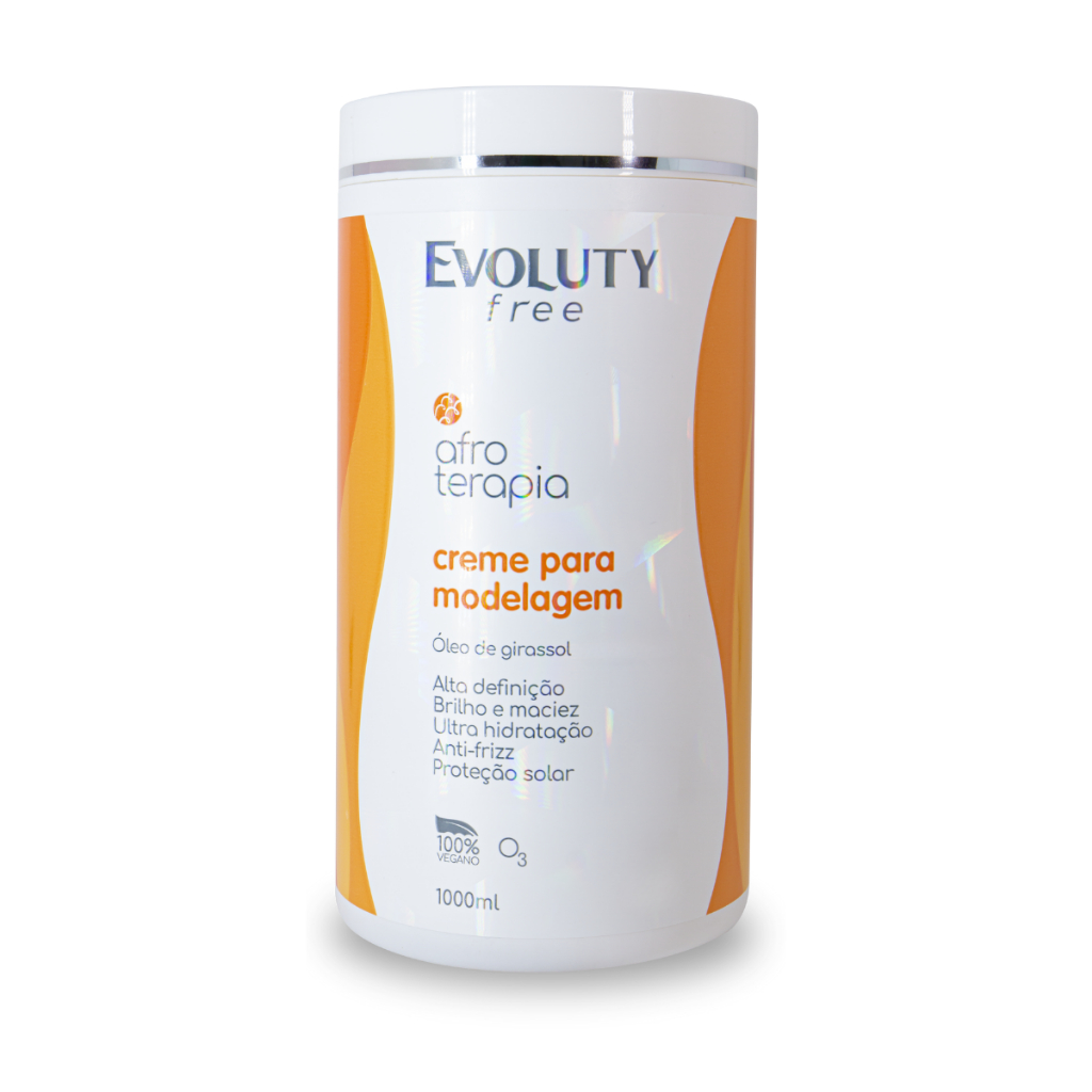 Linha Afroterapia Evoluty Free – Tratamento Completo para Cabelos Cacheados, Ondulados e Crespos Quem tem cachos sabe: manter os fios hidratados, definidos e livres do frizz é um desafio diário. A linha Afroterapia Evoluty Free foi desenvolvida especialmente para atender às necessidades dos cabelos cacheados, ondulados e crespos, oferecendo nutrição profunda, definição natural e controle do frizz. CACHOS SOLTOS AFROTERAPIA 300gr Desenvolvida com Óleo De Girassol Ozonizado e Proteína Do Arroz, a máscara disciplinante Cachos Soltos Afroterapia é um creme capilar redutor de volume que relaxa temporariamente os fios, além de hidratar profundamente os cabelos, proporcionando brilho intenso, modelagem e maciez. Não alisa os fios. Modo de usar: Lavar os cabelos 2X com o Shampoo Hidratante Afroterapia Evoluty free e em seguida secar aproximadamente 80%. Aplicar o Cachos Soltos por toda extensão do fio, deixar agir por 40 minutos em seguida enxaguar bastante. Aplicar o Condicionador Hidratante, enxaguar e finalizar como de costume. CREME MODELADOR 1kg: O Creme de pentear para modelagem da Afroterapia Evoluty Free, foi desenvolvido especialmente para modelar, definir, hidratar e combater o frizz, com uma super combinação de óleo ozonizado de girassol e Proteína do Arroz, sem enxágue e totalmente livre de nocivos. Modo de usar: Aplique o creme nos cabelos úmidos, do comprimento às pontas. Penteie e finalize como de costume. . Itens do Kit: 1 Creme de Pentear Modelador de Cachos Afroterapia 1kg; 1 Cachos Soltos Afroterapia para soltura de cachos 300gr; Por que escolher a linha Afroterapia Evoluty Free? - Solução prática e eficaz para quem sofre com ressecamento, falta de definição e excesso de frizz. - Ingredientes que tratam profundamente enquanto realçam a beleza natural dos fios. - Produtos desenvolvidos para valorizar a diversidade das texturas capilares.