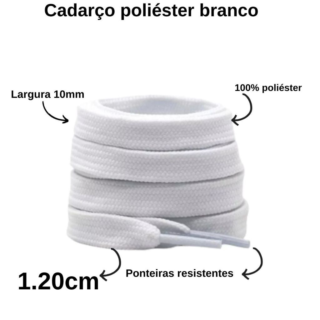 Cadarço Branco Compatível Todas Marcas Achatado 100% Poliéster 1.20cm Resistente