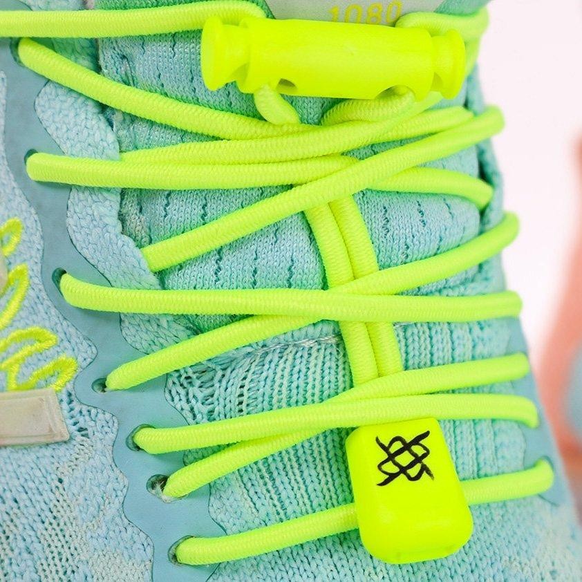 Cadarço Elástico para Tênis Hupi Laces 1 Par, Cor: Amarelo Neon Liso | Sem Nó, Ajuste Fácil, Ideal para Corrida