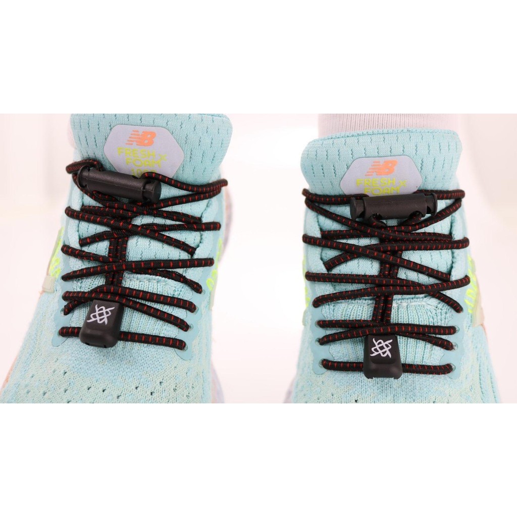 Cadarço Elástico para Tênis Hupi Laces 1 Par, Cor: Preto Risca Vermelho | Sem Nó, Ajuste Fácil, Ideal para Corrida