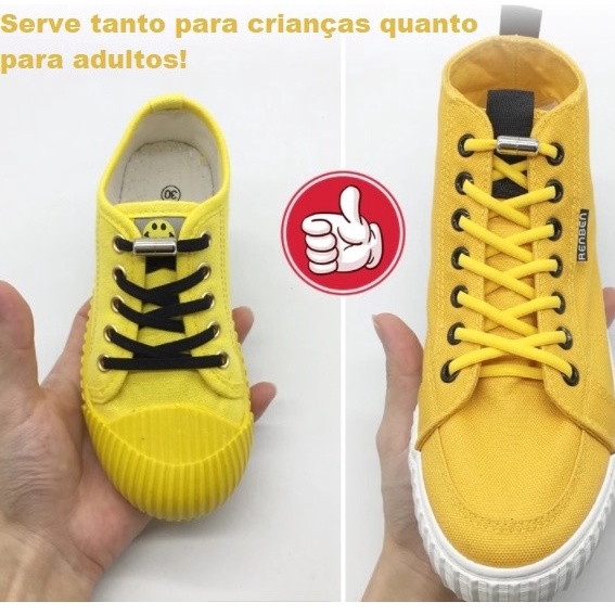 O prático fecho para cadarço é uma ideia simples e inovadora voltado a facilitar a vida de usuários de calçados de amarrar. Seu sistema de vedação de rosquear facilitara na hora do uso proporcionando maior segurança. Atende a todas as idades. Perfeito para uma criança que não sabe amarrar corretamente os cadarços por ainda não ter habilidade para lidar com nós ou laços. Ideal para pessoas que praticam atividades físicas e para um adulto que goste de estilo esse acessório é indispensável. Você nunca mais vai pisar no cadarço desamarrado!!! - Ajuste perfeito - Economiza tempo - Fácil instalação - Não deixa o cadarço soltar - Tamanho único - Não enferruja - Mais estilo sem o laço aparente Especificações do produto: Material: Metálico que não enferruja. Comprimento do cadarço: 1 metro Itens inclusos: 1 par de cadarços (1 metro) e 1 par de fechos metálico (não acompanha o tênis). Perguntas frequentes: 1) Qual o tamanho do cadarço? O cadarço possui 1 metro. 2) Quais os itens inclusos? O anúncio refere-se a um par de cadarços de 1 metro e 1 par de fechos metálico. 3) Os produtos são a pronta entrega? Sim, os produtos estão disponíveis a pronta entrega!