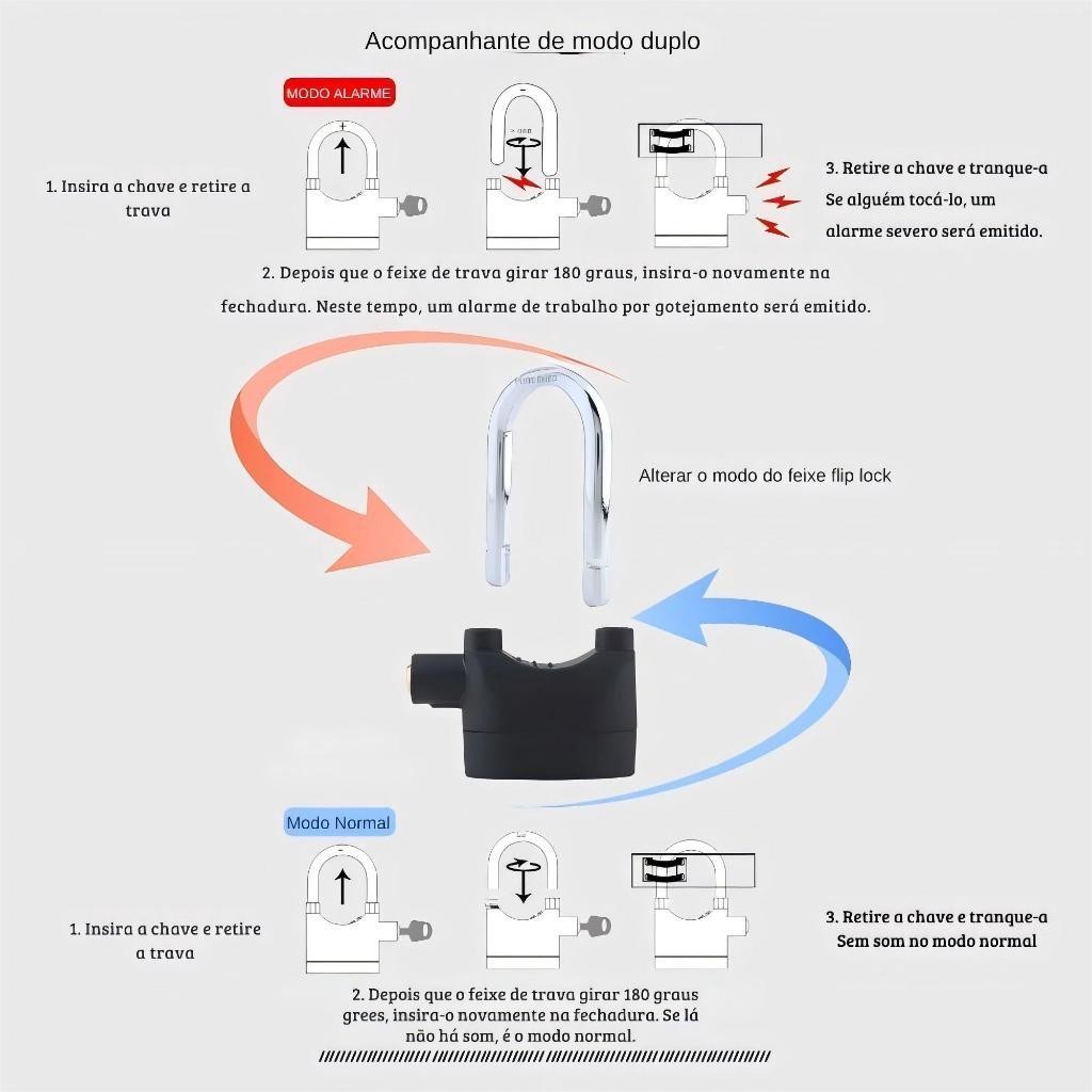 Cadeado Cmo Alarme Grande Prova De Água Antifurto Moto Bicicleta Portão Casa 110dB 6 Baterias Inclusas