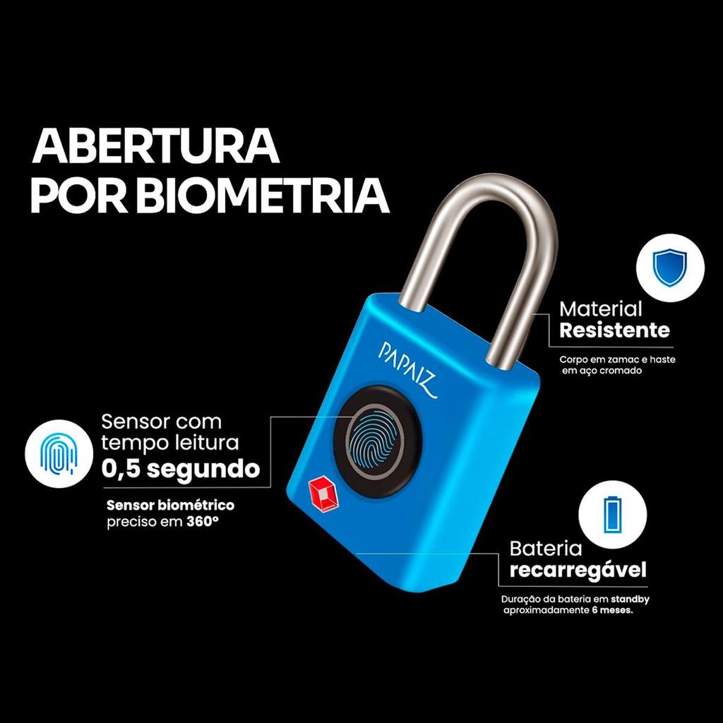 Cadeado Digital com Biometria e Senha Inteligente Recarregável TSA 35B - Papaiz
