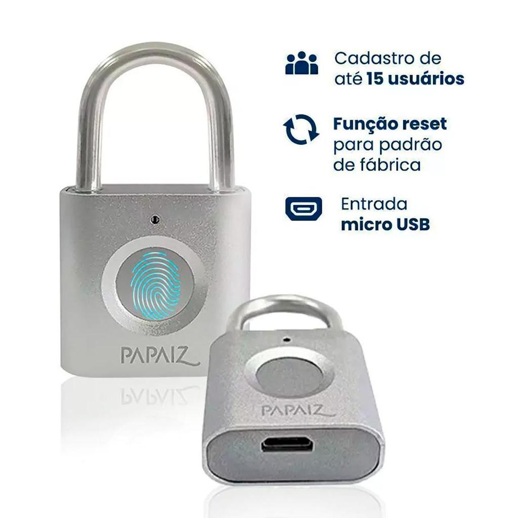 Cadeado Digital com Biometria Inteligente Recarregável CF30 - Papaiz