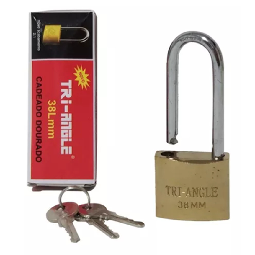 Cadeado Trian-Gle 38mm Alça longa 3,8x9,5cm Grande Reforçado Aço Seguro Segurança Barato Promoção Unidade Garanta a sua segurança com esse cadeado Trian-Gle. Possui um sistema de cementação no gancho, dificultando o corte e arrombamento, garantindo assim maior segurança e durabilidade ao produto. Contém: 1 unidade de cadeado e 3 chaves. Material: Aço. Tamanho: 3,8x9,5x1,5 cm. Gancho fechado possui 6cm, somente a parte interna, 5,5cm. Peso: 0,137kg Produzido Em Latão Maciço, Possui Haste Longa Parasituações Em Que A Haste Normal Não Alcança Sendo De Aço Cementada E Cromada. Três Chaves De Latão Níqueladas. Segurança Máxima, Durabilidade, Praticidade E Versatilidade. Para Lubrificar Use Somente Grafite Em Pó, Nunca Usar Óleo No Cilindro. Dimensões Aproximadas Da Embalagem (Cm) Axlxp 1 X 9.5 cm X 20 Peso Da Embalagem 0,155 Kg Material Latão E Aço Temperado Imagens Meramente Ilustrativas, as cores podem variar ENVIAMOS NOTA FISCAL Forma do cadeado Redondo Tipo de abertura Chave Altura: 95mm Largura: 38mm Peso 0.137 kg Conteudo 01 Cadeado 03 Chaves