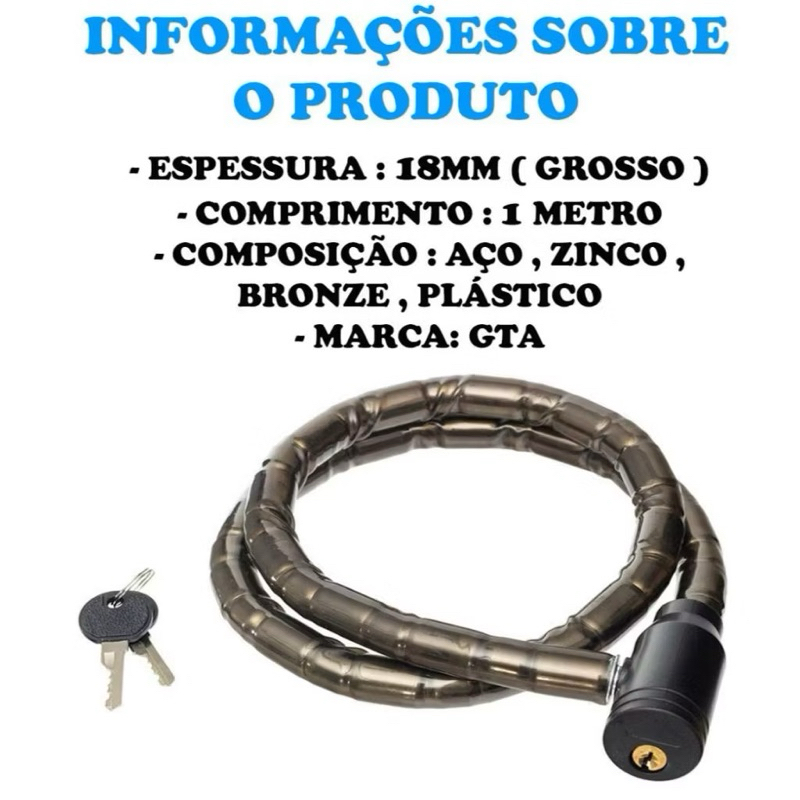 | Cadeado Grosso Anti Furto Articulado Bicicleta Moto GTA Reforçado T... este produto | R$ 23,90 | — | 4.9/5 | — |