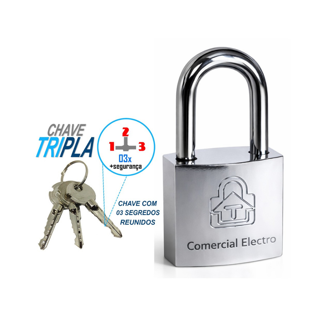 Cadeado Pequeno 32mm Anti Furto Com 3 Chaves Tetra Robusto Resistente Para Portão Corrente