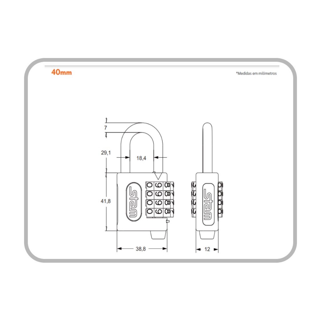Cadeado Stam Segredo Com Senha Zamac Preto Fosco E-coat 40mm
