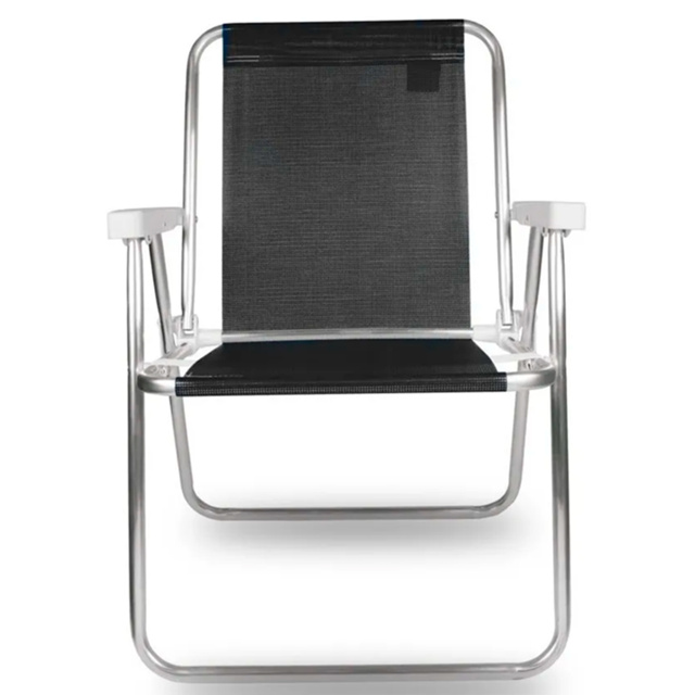 Cadeira Alta De Praia Preto Camping Verão Bel Alumínio Resistente, Confortável E Dobrável