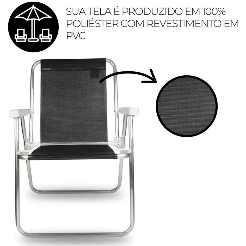 Cadeira Alta Para Praia Camping Feita Em Alumínio Resistente Leve Fácil De Transportar 72cm