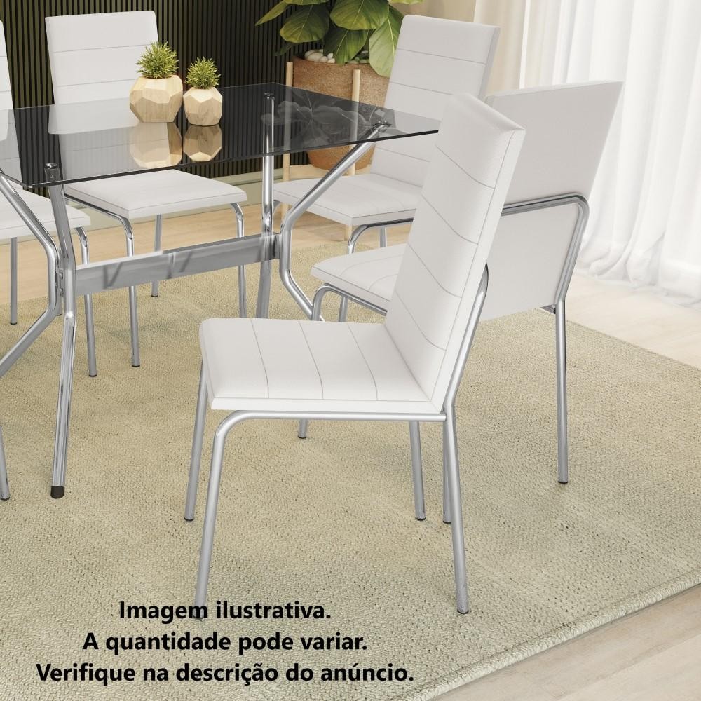 Cadeira Amsterdã Kappesberg Sala de Jantar Cozinha Escritório Metal Cromado Forro Branco 2 Un