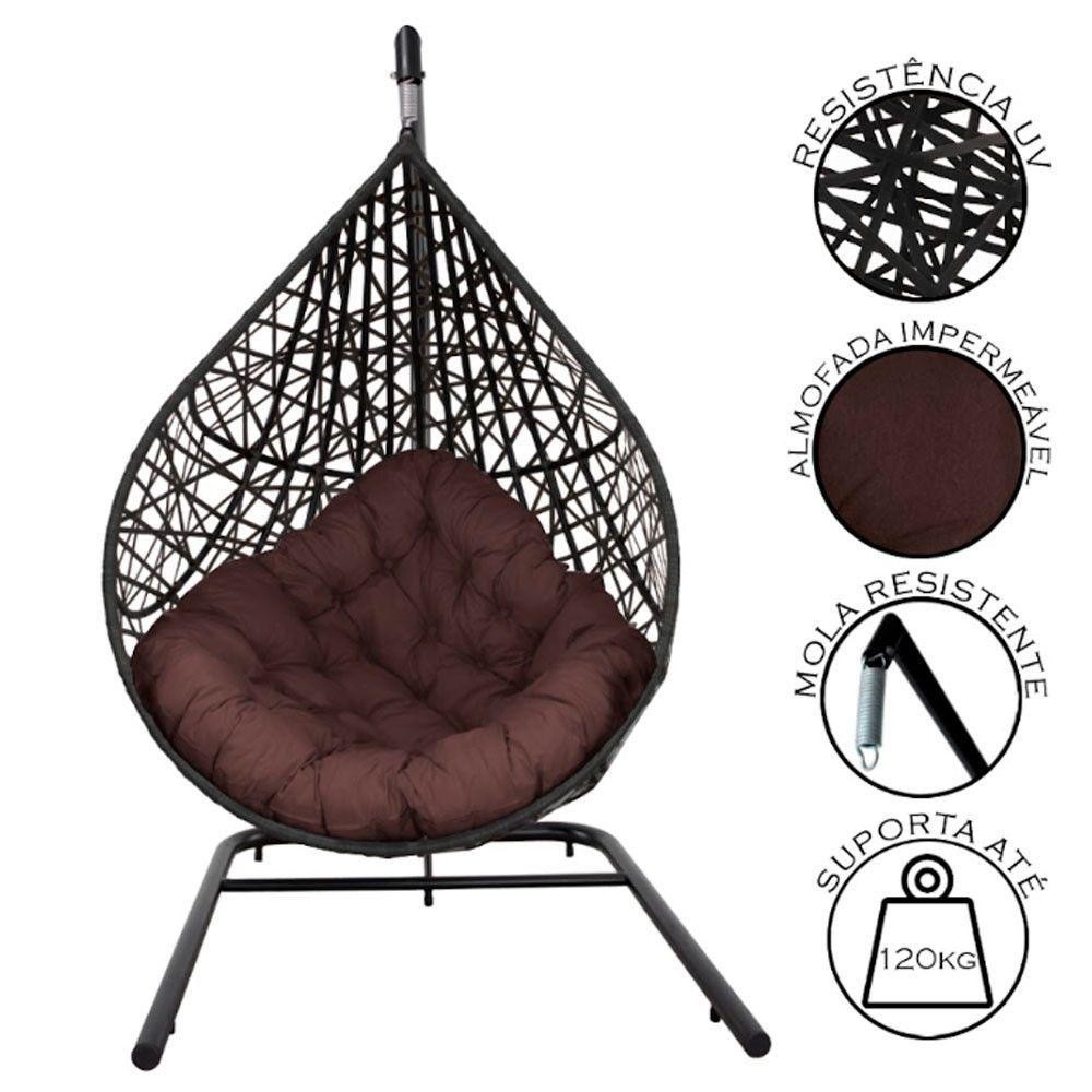 Cadeira Balanço Suspenso Gota com Suporte Acesse Móveis Preto com Marrom
