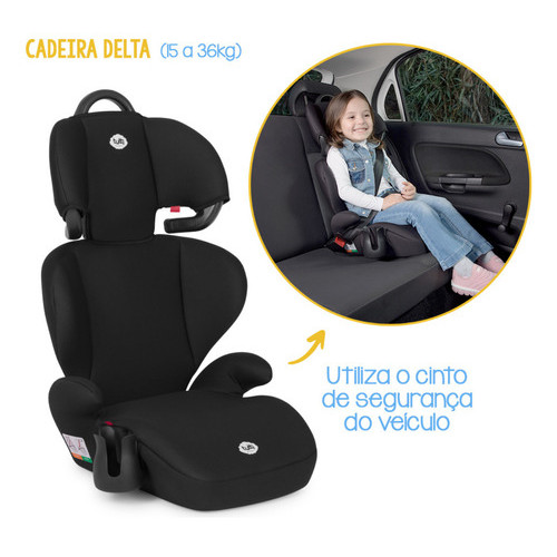 Cadeira Cadeirinha Assento Booster infantil para Carro Delta, parte da Linha Delta, é indicada para crianças com peso entre 15 e 36kg (grupos II e III). Apresenta um design sofisticado com tecido Favo e vem com um porta-copos, além de um apoio de cabeça ajustável em 5 posições. Este produto não possui cinto próprio, sendo instalado no veículo usando o cinto de segurança do carro. A instalação é rápida e prática. A Linha Delta incorpora a elegância da cor preta e oferece um revestimento de espuma confortável, fácil de limpar e que combina com diferentes estilos. A cadeira segue as normas de segurança NBR 14400 e proporciona apoio lateral para o conforto da criança. Descrição Técnica: Certificação: 000565/2019 Peso máximo recomendado: 36 Quilogramas Tipo de material: Plástico, Poliéster, Metal Número de posições: 5 Orientação: Virado para a frente Cor: Preto Fabricante: Tutti Baby Dimensões do produto: 39 x 46 x 74 cm; 2.5 kg Dimensões do assento: C-38 L-43 A-20 Marca: Tutti Baby Somos uma Loja de Comercio Online, voltada a artigos infantis, temos parceria com as melhores marcas do mercado neste segmento, buscamos sempre trazer novidades e inovação. - AVISO: Imagens meramente ilustrativas. As cores podem variar entre as imagens mostradas acima e o produto. - ATENÇÃO PARA OS DADOS DE ENTREGA: Confira o seu endereço de entrega cadastrado, não alteramos endereços após a compra. - HORÁRIO DE ATENDIMENTO: De Segunda à Sexta das 08:00 às 17:00h. _______________________________________________________________ Dúvidas Frequentes: 1 - Como Calcular seu Frete? R. Basta inserir seu CEP para o cálculo no campo frete e o site lhe informará as melhores opções de envio e seus respectivos preços. 2 - A mercadoria está disponível à pronta entrega? R: Todas as mercadorias são para pronta entrega. 3- O produto acompanha nota fiscal? R: Sim, todos os itens possuem nota fiscal.