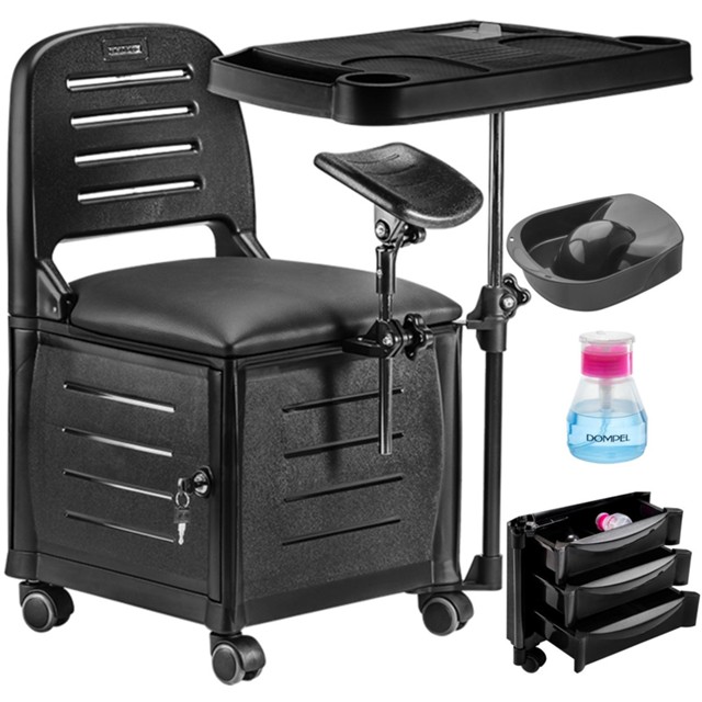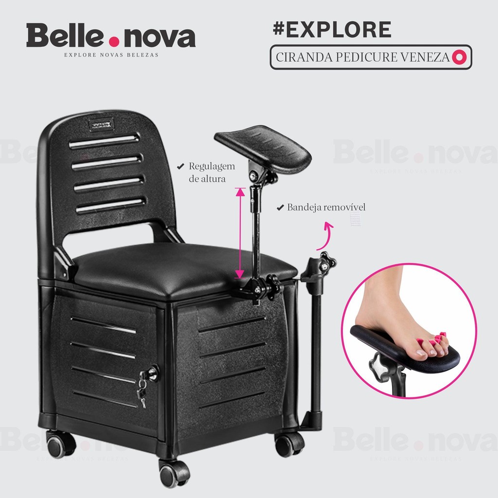 Cadeira Cirandinha Ciranda Dompel Veneza: Conforto e Funcionalidade para Profissionais ExigentesSe você busca a cirandinha para manicure e pedicure mais completa e moderna da categoria, a Cadeira Cirandinha Ciranda Dompel Veneza é a escolha perfeita. Seu design diferenciado valoriza o ambiente profissional, proporcionando conforto, beleza e funcionalidade incomparáveis. Atributos do Produto:Marca: Dompel Modelo: Veneza Cadeirinha Manicure Pedicure Salão Cor Preto Características Destacadas:Mesa Multifuncional e RemovívelA mesa conta com um sistema de regulagem de altura anatômico e robusto, além de nichos para armazenamento de materiais, porta acetona, tigela anatômica e porta objetos laterais. Encosto RebatívelO encosto rebatível facilita o transporte e é ideal para trabalhos realizados em domicílio, proporcionando versatilidade e conforto. Assento Amplo e ConfortávelO assento revestido com espuma laminada de alta densidade garante conforto durante longos períodos de uso, priorizando a ergonomia do profissional. Suporte de Pés AjustávelO suporte de pés removível oferece ajustes de distância, altura e inclinação, adaptando-se às necessidades individuais de cada usuário. Estrutura Leve e ResistenteA estrutura em polímero injetado de alta resistência proporciona leveza e robustez, garantindo durabilidade e segurança no uso diário. Armazenamento PráticoCom 3 gavetas auxiliares e uma porta com chave para acesso ao compartimento, a Cadeira Cirandinha Ciranda oferece espaço organizado para os materiais de trabalho. Base Estável e MóvelA base ampla e quadrada, equipada com rodízios de nylon, proporciona estabilidade e facilita a locomoção da cadeira no ambiente de trabalho. Especificações Técnicas:Capacidade de Peso Máximo: 150 kg Largura: 68 cm Comprimento: 54,5 cm Altura: 83 cm