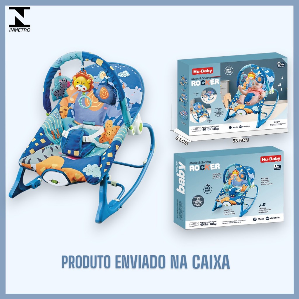 Essa cadeira de descanso é a aliada perfeita para o seu bebê, feita para acompanhá-lo desde o nascimento até os 36 meses de vida. Pode ser utilizada em duas posições diferentes. A cadeira possui cinto de segurança de 3 pontos, muito seguro para o bebê, além disso possui um acolchoado removível, facilitando na hora da limpeza. A cadeirinha de descanso suporta até 18kg, é o local ideal para o seu bebê descansar e relaxar, enquanto você faz as suas tarefas diárias. PRODUTO CERTIFICADO PELO INMETRO --------------------------------------------------- ESTOQUE NACIONAL E A PRONTA ENTREGA. CARACTERÍSTICAS: - unissex - móbile que toca música - vibra - arco removível com 3 brinquedos tipo mordedores, atóxicos. - cinto de segurança de 3 pontos - acento reclinável em 2 posições - é possível utilizar como um balanço - acolchoado removível, facilita a limpeza - Material: ABS + Metal + Tecido - Capacidade: 18kg - Tamanho do produto (comprimento/altura/profundidade): 66cm x 65cm x 45cm CONTÉM NA EMBALAGEM: - 1 cadeira de bebê - Arco com 3 móbiles IDADE RECOMENDADA: 0 a 36 meses --------------------------------------------------- QUEM SOMOS? Bem-vindo à Little Bee! Somos dedicados a fornecer produtos de alta qualidade a preços acessíveis. Garantimos acesso às melhores opções do mercado, trabalhando com os melhores fornecedores para manter altos padrões de qualidade. Oferecemos uma variedade de produtos cuidadosamente selecionados e atendimento personalizado para uma experiência de compra excepcional. Descubra a excelência em qualidade e preço na Little Bee. - Precisa falar com a gente? Canais de atendimento de qualidade; - Não está satisfeito? Devolução gratuita, sem custo algum; - Está do outro lado do Brasil? Frete seguro de norte a sul; - Garantia? Com certeza, sinta-se protegido, e sua compra também; - Já pagou? Envio rápido, no máximo 1 dia útil; Proporcionamos a devolução por arrependimento em até 7 dias.