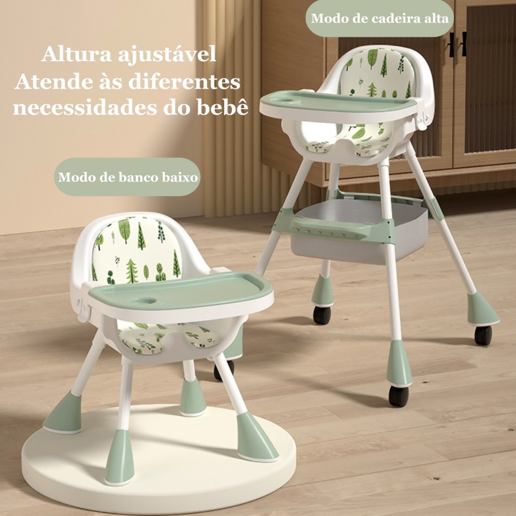 🥰🥰💗A Cadeira de Alimentação para Bebês combina segurança, conforto e praticidade para o dia a dia das famílias. Ideal para crianças de 6 meses a 6 anos, suporta até 25kg e possui estrutura resistente em metal e polipropileno. Conta com cinto de segurança, assento acolchoado, apoio para os pés e uma prática bolsa organizadora sob o assento. A bandeja é removível e possui ajuste em 3 níveis de profundidade, adaptando-se ao crescimento da criança. Com rodinhas e travas em duas delas, pode ser usada como cadeira alta ou baixa, com total estabilidade. 💗Atributos do Produto: Cor: Rosa ,Azul ,Verde Capacidade: Até 25,0 Kg Material: Polipropileno + estrutura metálica 💗Detalhes e Especificações Técnicas: -Com rodinhas -Apoio para os pés -Bandeja removível -Cintos de segurança -Assento com almofada -Com travas em 2 rodas -Bandeja de 46 x 24,5 cm -Altura de 85cm sem as rodinhas -Ideal para crianças de 6 meses a 6 anos -Bolsa de armazenamento embaixo do assento -Bandeja ajustável em 3 níveis de profundidade -Ajustável como cadeira de alimentação alta ou baixa 💗Dimensões do Produto (Alta/Baixa): -Altura (com rodinhas): 91,0 cm / 59,0 cm -Largura: 61,0 cm / 43,5 cm -Comprimento: 71,5 cm / 48,5 cm -Peso: 3,0 Kg 💗Conteúdo da Embalagem: 01 Assento 01 Bandeja pequena 01 Bandeja principal 01 Apoio para os pés 04 Tubos de aço longos 04 Tubos de aço curtos 04 Pés 04 Rodas (02 possuem travas) 01 Almofada para assento 01 Bolsa organizadora 01 Cinto de segurança 01 Manual de instruções ❗️❗️💗💗Importante • Produtos de decoração não inclusos. Imagens meramente ilustrativas; • As cores dos objetos podem sofrer alterações devido a luminosidade, configurações do monitor e até mesmo a percepção do usuário; *Os dados divulgados são de responsabilidade do fabricante/fornecedor.