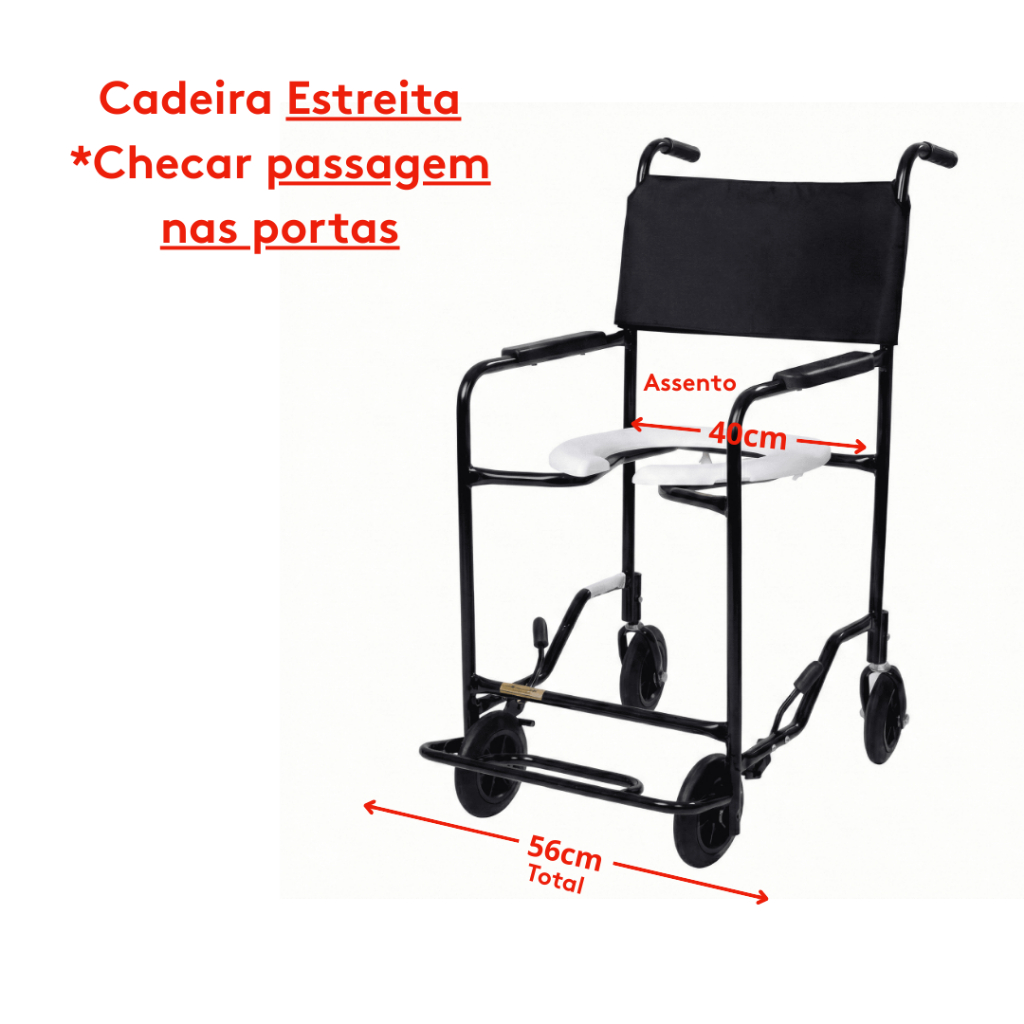 Cadeira De Banho Higiênica Segurança Conforto e Mobilidade Para Idosos e PcD Cadeira de Banho Higiênica– Segurança e Conforto no Dia a Dia A Cadeira de Banho Higiênica foi desenvolvida para proporcionar segurança, conforto e praticidade durante o banho e o uso do vaso sanitário. Com estrutura robusta e funcional, é ideal para idosos e pessoas com mobilidade reduzida, garantindo mais autonomia e bem-estar no dia a dia. Principais Benefícios ✔ Estrutura resistente: fabricada em aço carbono reforçado com estrutura monobloco fixa para maior estabilidade e durabilidade. ✔ Apoios de braço fixos em nylon injetado, proporcionando segurança e conforto. ✔ Rodas de 6 polegadas com pneus maciços e freios bilaterais, garantindo mais segurança no deslocamento. ✔ Assento sanitário removível, fixado com parafusos para facilitar a higienização e a manutenção. ✔ Pintura epóxi eletrostática, resistente e durável, garantindo maior vida útil ao produto. Especificações Técnicas Largura do assento: 40 cm Altura do assento até o chão: 53 cm Largura total: 56 cm Peso da cadeira: 8 kg Capacidade máxima: 85 kg Cor: Preto Por que escolher a Cadeira de Banho Higiênica ? ✅ Mais conforto e segurança para o banho e uso sanitário. ✅ Fácil higienização e manutenção, com assento removível. ✅ Ideal para idosos e pessoas com mobilidade reduzida. 🔹 Garanta já a sua e proporcione mais qualidade de vida no dia a dia ** Atenção nas medidas do produto antes de finalizar a compra, cheque a largura de assento e a passagem em suas portas