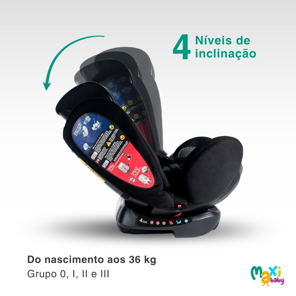 Cadeira de Carro Infantil 0 a 36Kg Elite 4 em 1 - Maxi Baby A cadeira Elite da Maxi Baby é uma cadeira para auto completa que irá atender todas as fases do seu filho, desde o nascimento até aproximadamente os 10 anos de idade, onde ele já estará pronto para o assento do veículo, não sendo necessário mais nenhuma cadeira de elevação. Possuí almofada removível para fácil lavagem, cinto de segurança de 5 pontos com ajuste de altura para os ombros em até 2 posições, reclinável em até 4 posições. Durante os primeiros meses do bebê, a cadeira Elite é instalada contra o movimento podendo estar nessa posição até 10kgs. Após 10kgs ela deverá ser fixada a favor do movimento e possui 4 opções de recline para melhor conforto da criança. Suas 4 posições de inclinação oferecem conforto para os passeios mais curtos ou as viagens mais longas, fazendo com que além de uma companheira da criança por toda a sua infância, seja uma grande aliada dos pais. Essa cadeirinha infantil é adequada para uso nos veículos ajustados com cintos de segurança retráteis de 3 pontos conta com o apoio de cabeça ajustável, almofada redutora de cabeça e costas, protetores de ombros e fivela com revestimento acolchoado e lavável. Produto certificado pelo INMETRO para maior segurança e conforto das crianças Principais Características: - Grupo: 0, 1, 2, 3 (De 0 a 36Kg) - Idade recomendada: A partir do Nascimento - No Grupo 0 (Até 10kg) - Deve ser instalada de costas para o movimento, fixada ao veículo com o cinto de segurança do veículo e a criança deve utilizar o cinto de segurança da própria cadeirinha - No Grupo 1 (9 à 18kg) - Deve ser fixada ao veículo com o cinto de segurança do veículo e a criança deve utilizar o cinto de segurança da própria cadeirinha - No Grupo 2 e 3 (15 à 36kg) - Deve ser utilizar sem os seus cintos de segurança da cadeira e o cinto de segurança do veículo deve prender a criança e a cadeirinha ao mesmo tempo. Utilização do cinto de segurança do veículo obrigatória a partir dos 18Kg e alternativamente à partir dos 15kgs. - Reclina em até 4 posições - Apoio de cabeça ajustável - Cinto de segurança de 5 pontos - 2 Ajustes de Ombros - Ajustador do cinto de segurança nos ombros - Dispositivo de Retenção com apoio de braço - Almofada redutora de costas e cabeça. - Protetores de Ombros e Fivela - Revestimento Acolchoado removível para lavar - Leve inclinação na base - Adequada para uso nos veículos ajustados com cintos de segurança retráteis de 3 pontos - Produto certificado pelo INMETRO - Escolha entre as Cores: Preta, Cinza ou Mescla Especificações Técnicas: - Conteúdo da Embalagem: 1 Cadeira de Carro + Manual de Instruções - Dimensões do Produto (LxCxH): 48,0 x 53,0 x 60,0 cm aprox - Peso: 7,4 kg - Material/Composição: Plástico, Espuma, Poliuretano, Tecido - Garantia: 12 meses (Contra Defeito de Fabricação Pelo Fabricante) - Produto Certificado pelo INMETRO nº 009889/2022 - Referência do Fabricante: 21535 / 21536 / 21776 - EAN: 7899403215356 / 7899403215363 / 7899403217763 - Marca: Maxi Baby Imagens meramente ilustrativas, as cores e estampas podem variar de acordo com o lote do fabricante.