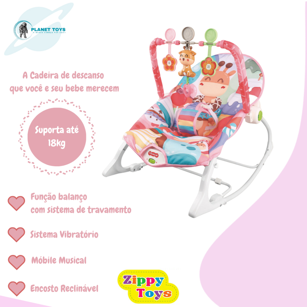 Cadeira de Descanso e Balanço P/ Bebê Baby Vibratória Com Musical e Brinquedos Didático Zippy Toys