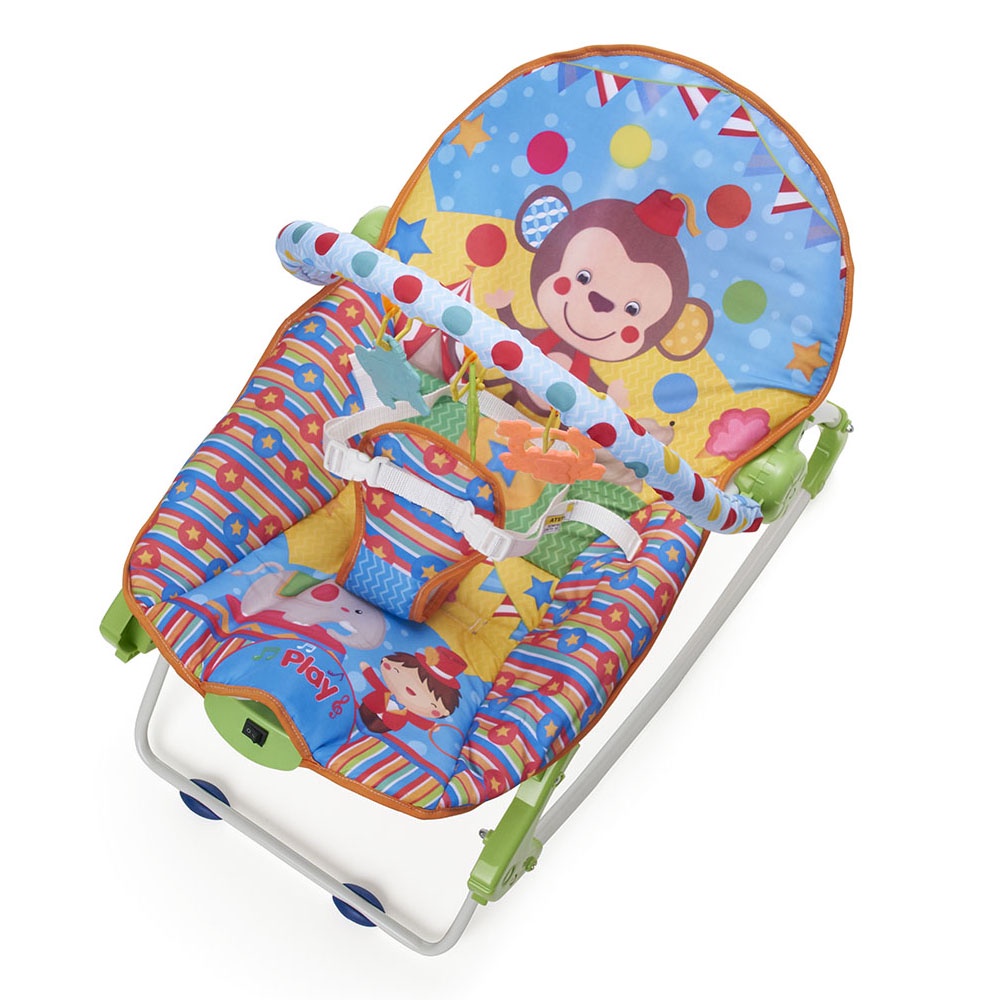 Cadeira de Descanso Musical e Vibratória Flex Até 18kgs Simon Replay Kids Cadeira de Descanso e Balanço Replay Kids até 18 kgs. Possui vibração suave e uma melodia que vai proporcionar momentos de diversão e relaxamento com carinho e conforto para o seu bebê. A cadeira de descanso ainda possui alça removível com 3 brinquedos coloridos e divertidos, para estimular o sentido dos bebês como tato, audição, visão e coordenação motora. Perfeito para embalar os sonhos de seu bebê, uma forma de manter a criança entretida por muito mais tempo. Brinquedos atóxicos, livre de BPA. Produto certificado com total segurança. Principais Características: - Idade recomendada: Do nascimento até 18kgs. - Modo Balanço - Cadeira Reclinada para crianças até 6 meses (Ou 7kgs) - Modo vertical - Cadeira em posição vertical para crianças que já sentam sozinhas (Até 18 kgs) - Cinto de segurança de 3 pontos. - Alça removível com 3 Brinquedos Atóxicos e livres de BPA. - Botão musical com melodia suave que acalma o bebê (Bateria Inclusa) - Caixa com vibração (Necessário 2 pilhas "AA", não inclusas) - Acolchoado com estampas divertidas, removível para limpeza - Peso máximo permitido: 18kgs - Produto certificado - Livre de BPA Especificações Técnicas: - Conteúdo da Embalagem: 1 Cadeira de Descanso e Manual de Instruções - Dimensões do Produto Aberto (LxCxH): 47,0 x 65,0 x 55,0 cm aprox. - Peso:2,5 kg aprox - Composição: ABS/Metal e Poliéster. - Garantia: 90 Dias (Contra Defeito de Fabricação Pelo Fabricante) - Produto Certificado CE-BRI/INNAC 02089-001 - Referência do Fabricante: 21372 - EAN: 7899403213727 - Marca: Replay Kids Imagens meramente ilustrativas, cores e modelos podem variar de acordo com o lote do fabricante.
