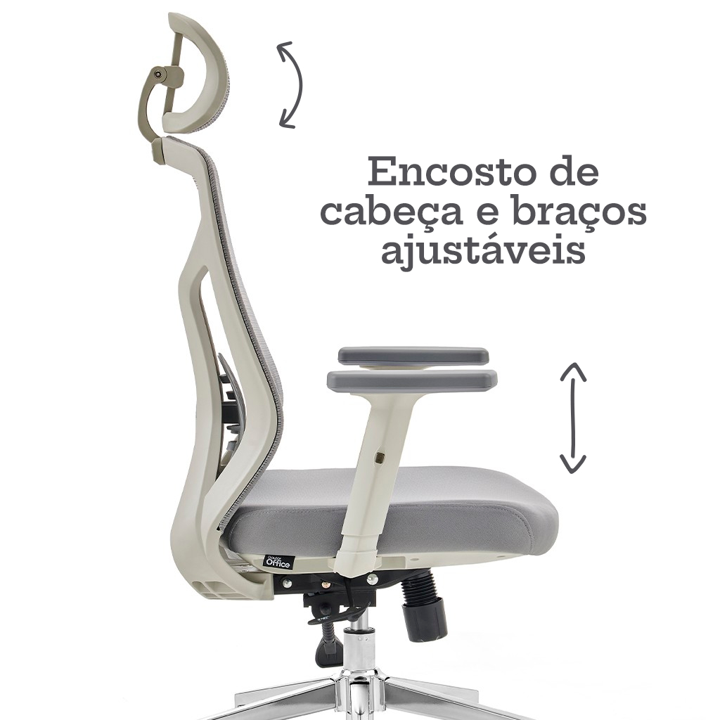 Cadeira de Escritório Diretor Dr.Office Giratória Ergo Pro, Mesh Respirável, Regulagem de Altura, Apoio de Cabeça, Cinza