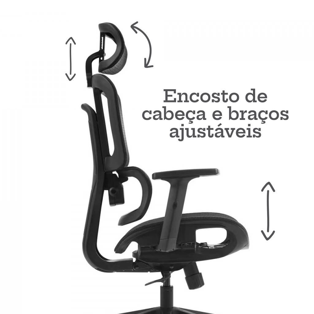 Cadeira de Escritório Dr. Office Business, Preta, Mesh, 2D com altura ajustável, Suporta até 120kg
