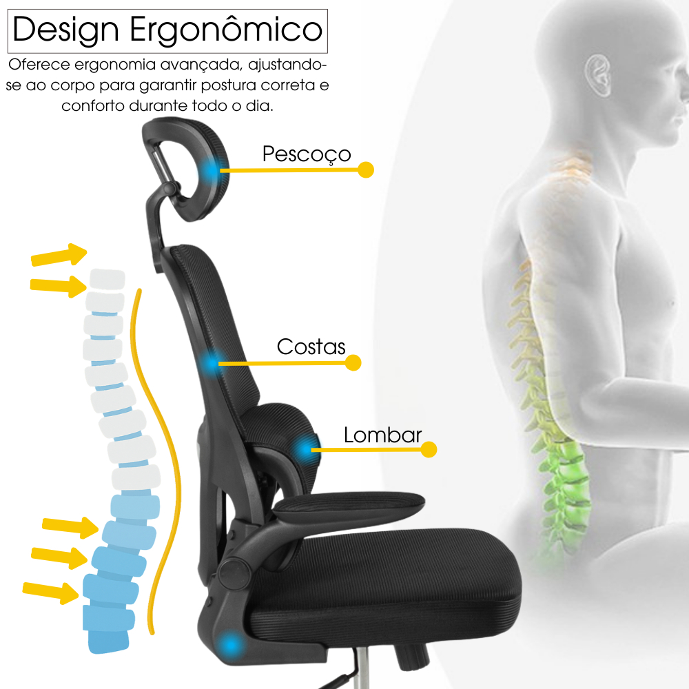 Cadeira de Escritório Giratória Executiva Atenas com Regulagem de Altura Experimente o máximo conforto e elegância com a nossa cadeira de escritório giratória executiva Atenas, projetada para atender às demandas dos ambientes profissionais mais exigentes. Com um design moderno e sofisticado, esta cadeira não só complementa a estética do seu espaço de trabalho, mas também oferece funcionalidades excepcionais para aprimorar sua produtividade. A função de regulagem de altura proporciona a personalização perfeita para atender às suas necessidades ergonômicas individuais, garantindo uma postura correta e confortável durante horas de trabalho prolongadas. Sua base giratória permite uma mobilidade suave e flexível, facilitando a movimentação ao redor da mesa e tornando cada tarefa mais conveniente. Seu encosto em tela mesh de alta qualidade, oferece uma experiência única de conforto. A tela mesh permite uma circulação de ar adequada, mantendo-o fresco e confortável mesmo durante as horas mais longas de trabalho. Além disso, o encosto em mesh proporciona um apoio confortável, moldando-se suavemente às curvas naturais da sua coluna e promovendo uma postura correta. Construída com materiais de alta qualidade e durabilidade, a Cadeira Atenas possui o seu encosto feito em tela mesh e o seu assento e confeccionado em madeira e estofado com espuma. Sua estrutura é feita em polipropileno e metal, materiais resistentes que garantem uma longa vida útil ao produto. Especificações: > Material do Encosto: Polipropileno e Tela Mesh > Material do Assento: Madeira Estofada com Espuma > Material da Estrutura: Metal e Polipropileno Dimensões: > Altura Total com Encosto(cm): 128,00 - 119,00 > Altura Total sem Encosto(cm): 106,00 - 98,00 > Altura do Assento(cm): 46,00 - 37,00 > Largura do Assento(cm): 50,00 > Profundidade do Assento(cm): 50,50 > Altura do Encosto(cm): 56,00 > Largura do Encosto(cm): 49,00 > Altura Apoio de Cabeça(cm): 20,00 > Largura Apoio de Cabeça(cm): 33,00 > Largura Apoio de Braço(cm): 7,00 ------------------------------------------------------------------------------------------ Importante: Produto enviado montado acondicionado em caixa de papelão reforçada Observações de Entrega: Os serviços de entrega são realizados por empresas terceirizadas parceiras, assim os entregadores não são autorizados: > Entrar no domicílio, sem estar acompanhado pelo cliente; > Entrar ou subir desacompanhado em prédio residencial ou comercial, o cliente precisa receber o pedido na portaria; > Entregar por meios alternativos (exemplo: içar produto por janela, subir escadas); > Entregar em edifícios, entrega será realizada apenas na portaria; > Realizar montagens, instalação ou manutenção de produtos; > Abrir a embalagem do produto; > Realizar entrega em endereço diferente do que consta na Nota Fiscal; > Realizar entrega a menor de idade ou sem documento de identificação; > Marca: Magazine Decor >Garantia: 03 Meses Contra Defeitos de Fabricação