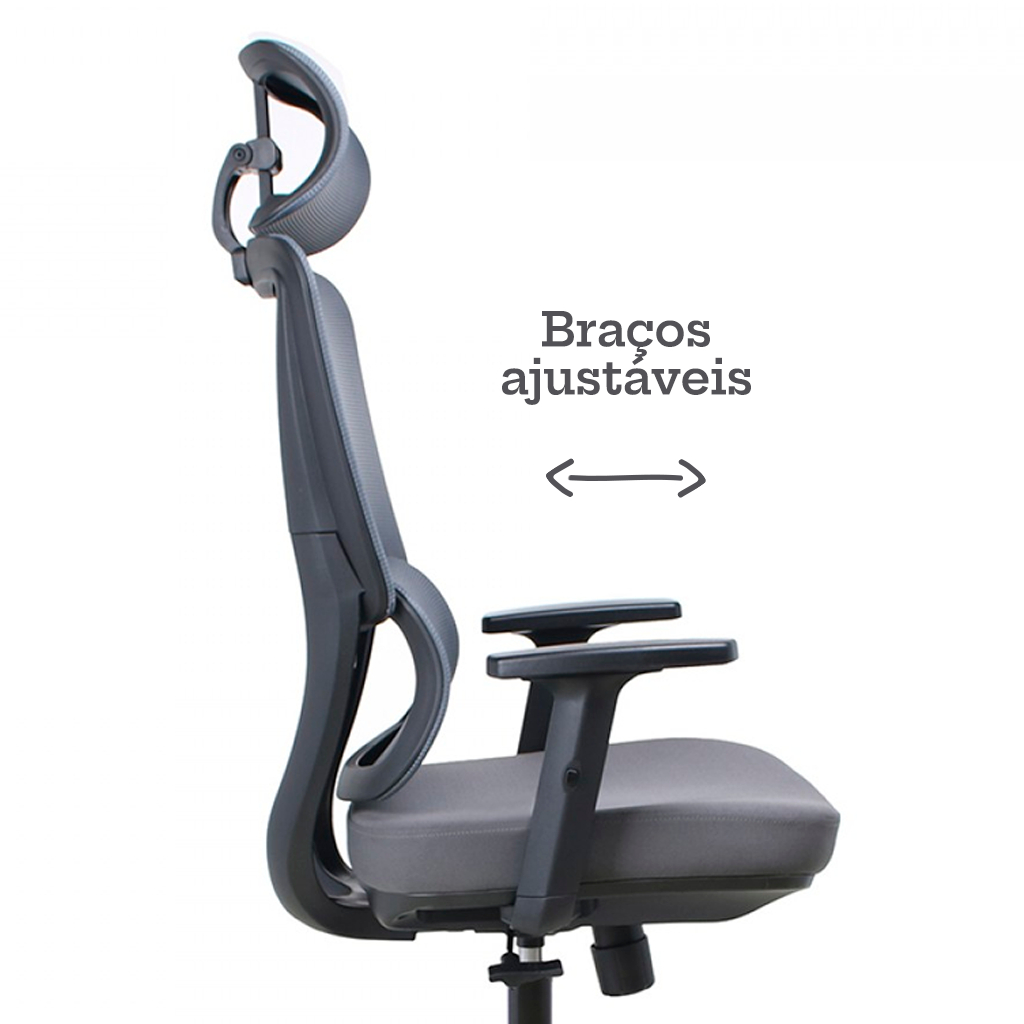 Cadeira de Escritório Presidente Dr.Office Work Pro Giratória, Mesh Respirável, Braço Ajustável