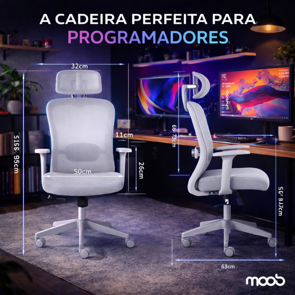 Cadeira de Escritório Presidente Ergonômica Para Programadores Moob Tokyo Cinza