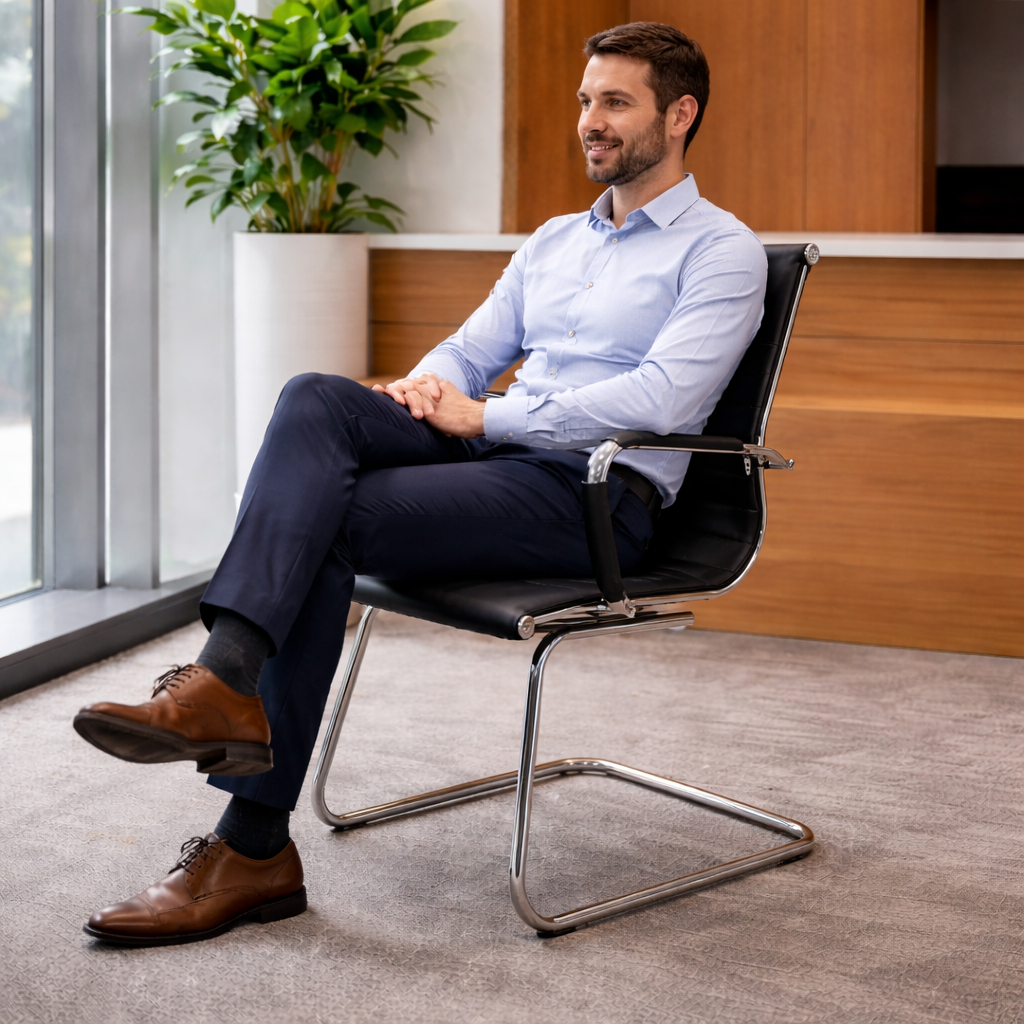 Cadeira De Escritório Recepção Moob Boston Executiva Com Base Fixa Esteirinha Preta