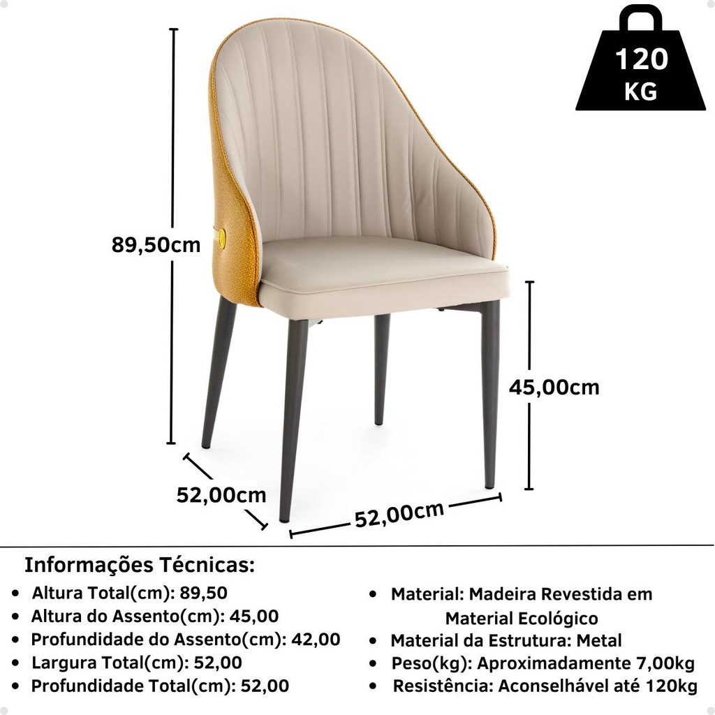 Cadeira de Jantar Estofada La Martina A Cadeira de Jantar Estofada La Martina é a escolha perfeita para quem busca elegância, conforto e um toque moderno na decoração. Seu design contemporâneo combina linhas suaves e sofisticadas, tornando-a uma peça versátil para diversos ambientes, como salas de jantar, escritórios, recepções e até restaurantes refinados. O assento e o encosto são totalmente estofados, proporcionando um conforto excepcional para momentos prolongados de uso. O encosto curvado foi projetado ergonomicamente para se ajustar perfeitamente ao corpo, oferecendo suporte e bem-estar. Além disso, seu formato abraça o seu corpo, tornando-a ainda mais aconchegante. Seu assento e encosto são feitos em madeira e revestidos com material ecológico, materiais resistentes garantia de durabilidade e estabilidade, enquanto seus pés são feitos em metal oferecendo um visual elegante e garantindo um produto robusto e durável. Seja para uma refeição especial ou para compor um ambiente requintado, a Cadeira La Martina é a combinação ideal entre design moderno, conforto e funcionalidade. Transforme seu espaço com essa peça incrível! Especificações: > Material do Assento: Madeira, estofada com espuma e revestida com material ecológico > Material do Encosto: Madeira, estofada com espuma e revestida com material ecológico > Material da Estrutura: Metal > Resistência: Aconselhável até 120,00kg > Peso aproximado: 7,00kg Medidas: > Altura Total(cm): 89,50 > Altura do Assento(cm): 45,00 > Profundidade do Assento(cm): 42,00 > Largura do Assento(cm): 49,00 > Profundidade Total(cm): 52,00 > Largura Total(cm): 52,00 > Altura do Encosto(cm): 46,00 Importante: Produto enviado desmontado acondicionado em caixa de papelão reforçada, acompanha manual de montagem (não nos responsabilizamos pela montagem do produto). > Observações de Entrega: Os entregadores não são autorizados: > Entrar no domicílio, sem estar acompanhado pelo cliente; > Entrar ou subir desacompanhado em prédio residencial ou comercial, o cliente precisa receber o pedido na portaria; > Entregar por meios alternativos (exemplo: içar produto por janela, subir escadas); > Entregar em edifícios, entrega será realizada apenas na portaria; > Realizar montagens, instalação ou manutenção de produtos; > Abrir a embalagem do produto; > Realizar entrega em endereço diferente do que consta na Nota Fiscal; > Garantia: 03 Meses Contra Defeitos de Fabricação. > Marca: Magazine Decor
