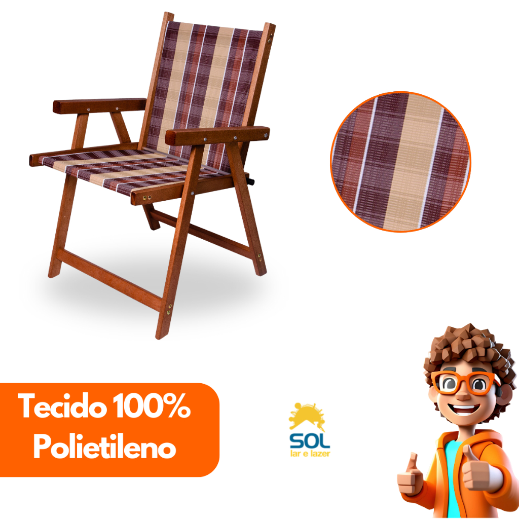 Cadeira de Madeira Varanda Piscina Jardim Sacada Suporta 120kg Dobrável Marrom Sol Lar e Lazer