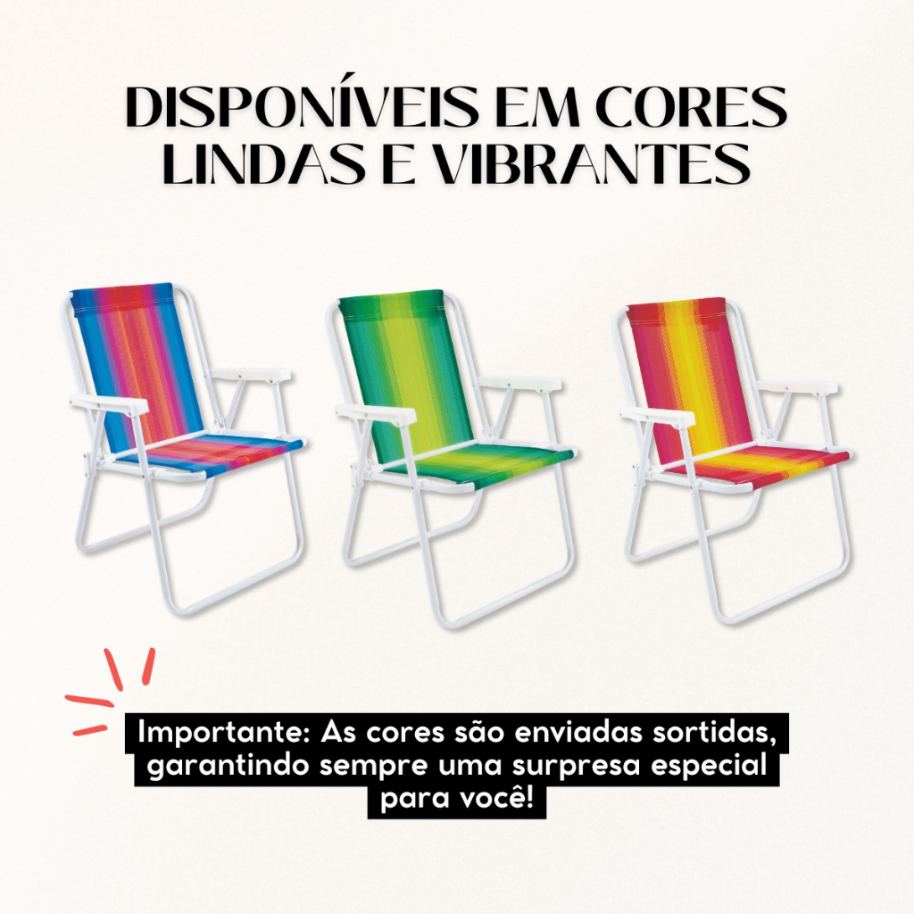 Cadeira de Praia de Aço Dobrável – Leve, Resistente e Confortável! Se você procura uma cadeira prática, durável e confortável para aproveitar momentos de lazer, a Cadeira de Praia de Aço Dobrável é a escolha perfeita! Com um design funcional e materiais de alta qualidade, ela é ideal para diversas ocasiões, como um dia ensolarado na praia, um acampamento ao ar livre, uma pescaria tranquila ou simplesmente para relaxar no quintal ou na varanda de casa. Por que escolher esta cadeira? Nossa cadeira foi projetada para oferecer máximo conforto e praticidade, sem abrir mão da resistência. Confira os diferenciais que fazem dela uma excelente opção: Estrutura super resistente Fabricada em aço carbono com pintura epóxi branca, a cadeira conta com uma estrutura robusta e durável. Esse acabamento especial protege o metal contra ferrugem e corrosão, garantindo maior vida útil, especialmente em ambientes úmidos, como praias e áreas abertas. Assento confortável e ventilado O assento e o encosto são feitos de tela 100% poliéster, um material de alta resistência que proporciona um suporte firme e confortável. Além disso, sua trama permite a circulação do ar, evitando o acúmulo de calor e garantindo maior conforto nos dias quentes. Dobrável e fácil de transportar Com um design compacto e dobrável, a cadeira pode ser facilmente fechada e transportada sem ocupar muito espaço. Seu tamanho reduzido após o fechamento permite que seja guardada no porta-malas do carro, em armários ou até mesmo atrás de portas, tornando-a ideal para quem busca praticidade no dia a dia. Segurança e estabilidade A estrutura da cadeira foi desenvolvida para proporcionar máxima estabilidade. Seus pés reforçados garantem um suporte firme e seguro, evitando balanços indesejados. Além disso, sua construção é projetada para suportar até 110 kg sem comprometer o equilíbrio ou a durabilidade. Especificações Técnicas: • Altura: 54,4 cm • Largura: 53 cm • Peso: 1 kg • Material: Aço pintado e tela em poliéster • Capacidade: Suporta até 110 kg Envio Imediato – Receba Rápido! Comprando até as 15h, seu pedido será despachado no mesmo dia, garantindo uma entrega ágil para que você possa aproveitar sua cadeira o quanto antes. Não perca essa oportunidade! Adquira agora a Cadeira de Praia de Aço Dobrável e garanta mais conforto e praticidade para os seus momentos de lazer! Garantia do vendedor: 90 dias