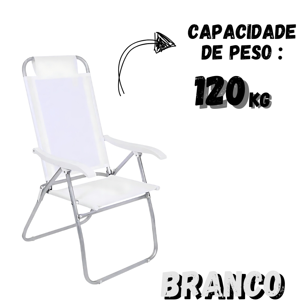 Cadeira de Praia Reclinável 4 Posições Prosa em Alumínio BEL Transforme seus dias de descanso com a Cadeira de Praia Reclinável Prosa da Bel, uma combinação perfeita de conforto, resistência e praticidade. Desenvolvida com estrutura em alumínio reforçado, esta cadeira é leve, durável e ideal para enfrentar sol, chuva e maresia, garantindo longa vida útil. Seu design ergonômico inclui encosto reclinável em até 4 posições e um assento mais largo, proporcionando maior conforto para diferentes preferências. A tela em 100% poliéster revestida com PVC oferece resistência e fácil limpeza, enquanto os apoios de braço em polipropileno garantem suporte adicional para seu relaxamento. A praticidade é outro destaque do modelo. Dobrável e fácil de transportar, a Cadeira Prosa é perfeita para levar à praia, ao parque ou ao quintal. Com capacidade para suportar até 120 kg e uma altura de assento de 43 cm, ela é ideal para diferentes superfícies, oferecendo conforto e segurança em qualquer ambiente. Compacta e funcional, suas dimensões de 70 cm x 57 cm x 114 cm são ideais para quem busca economia de espaço sem abrir mão de qualidade e conforto. Além disso, o selo "Fabricado no Brasil" reforça a excelência do produto. Seja para um dia na praia, um piquenique ou um momento de leitura ao ar livre, a Cadeira de Praia Reclinável 4 Posições Prosa em Alumínio Bel é a escolha ideal para aproveitar seus momentos de lazer com estilo e tranquilidade. VANTAGENS E BENEFÍCIOS Conforto Personalizado: Encosto reclinável em 4 posições e assento mais largo, oferecendo suporte ideal para diversos momentos de relaxamento. Resistência à Maresia: Estrutura em alumínio e tela com revestimento em PVC garantem alta durabilidade mesmo em ambientes expostos ao sol, chuva e maresia. Leveza e Praticidade: Design dobrável e materiais leves permitem fácil transporte e armazenamento, ideal para praias e passeios ao ar livre. Apoios de Braço Ergonômicos: Produzidos em polipropileno, oferecem mais conforto durante o uso prolongado. Alta Capacidade de Suporte: Suporta até 120 kg, sendo indicada para diversos perfis de usuários com segurança. Design Elevado: Altura do assento em 43 cm proporciona ergonomia e facilidade ao sentar ou levantar, adaptando-se bem a diferentes superfícies. DADOS TÉCNICOS Material: Poliéster, PVC, Alumínio e Polipropileno Peso Suportado: 120 kg Dimensões: 70 cm x 57 cm x 114 cm Altura do Assento: 43 cm Regulagem: 4 Posições Reclinável: Sim Estrutura: Alumínio com tubos reforçados Tela: 100% poliéster com revestimento em PVC Apoio para os Braços: Sim (polipropileno) Dobrável: Sim Modelo: Reclinável 4 Posições CORES E REFERÊNCIA Branco: 064001 Azul: 064002 Verde: 064003 Vermelha: 064004 Amarelo: 064005 Preto: 064007 Marrom: 064012 INDICAÇÕES DE USO Praia: Ideal para relaxar à beira-mar, com resistência à maresia e estrutura leve que facilita o transporte. Camping: Perfeita para momentos de descanso em acampamentos, sendo dobrável e fácil de levar para qualquer lugar. Piqueniques e Lazer ao Ar Livre: Proporciona conforto para atividades ao ar livre, como piqueniques em parques e jardins, com assento largo para maior comodidade. Varandas e Áreas Externas: Ótima opção para uso em varandas, quintais ou terraços, garantindo conforto e praticidade no dia a dia. Eventos e Shows ao Ar Livre: A estrutura dobrável e leve torna a cadeira uma excelente escolha para eventos, permitindo que você ajuste o encosto para aproveitar com total conforto. Garantia: 3 meses Marca: BEL * Selecionar a opção de cor. * Imagens meramente ilustrativas.