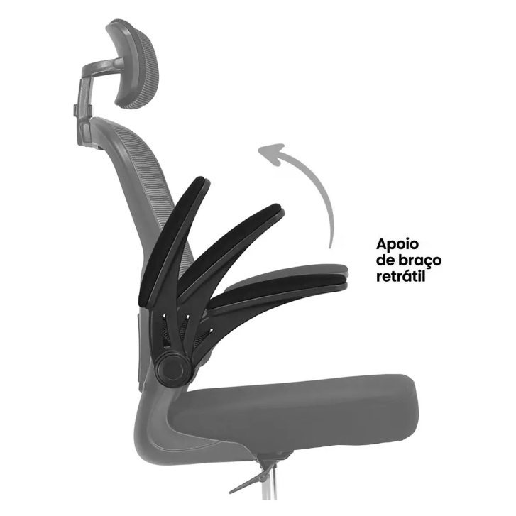Cadeira Escritório Apoio Cabeça E Lombar Preta Base Cromada