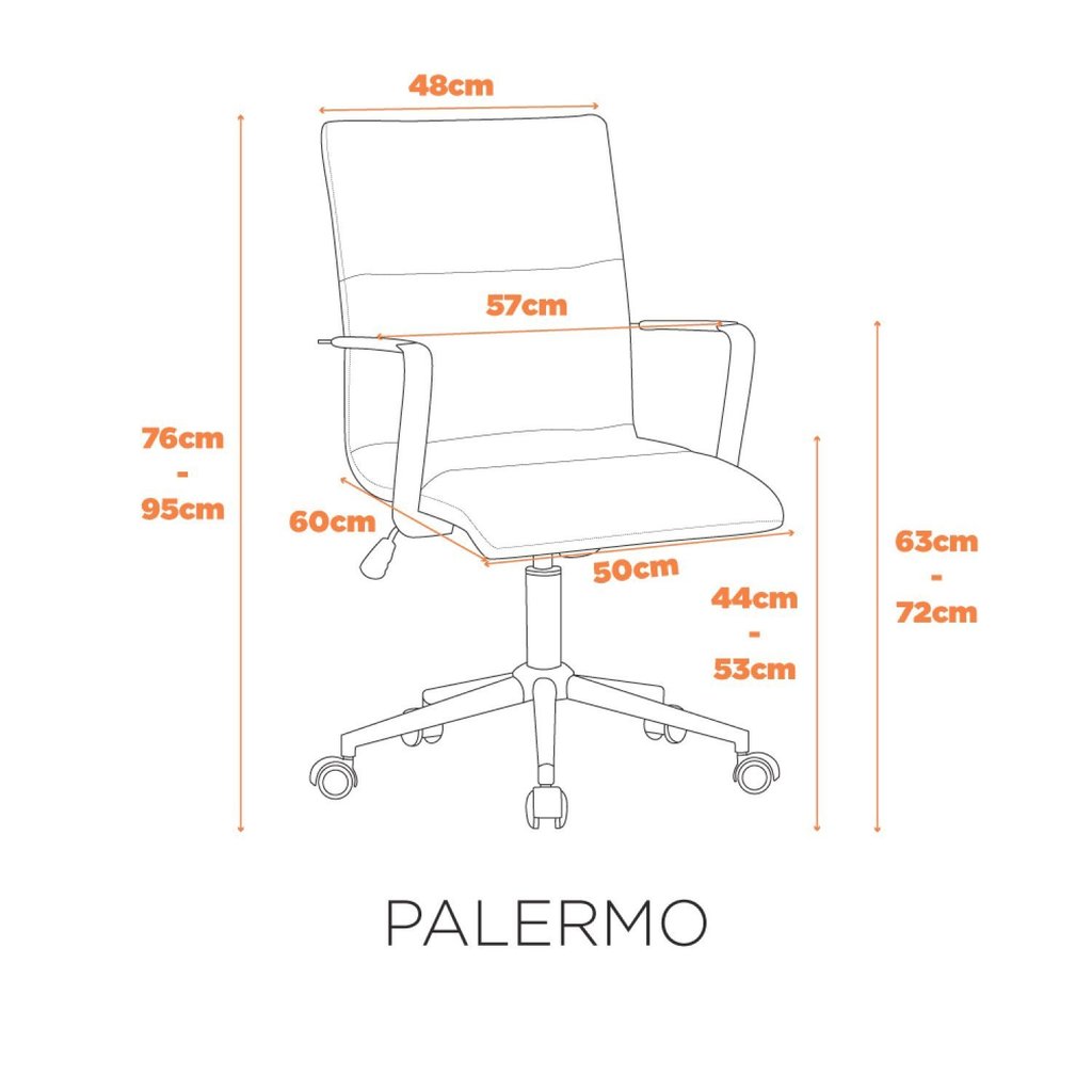 A cadeira Palermo é totalmente revestida em couro ecológico, incluindo seus braços, para maior conforto de quem estiver usando. O sistema relaxa está presente nela, junto a possibilidade de regular a altura do assento, fazendo com que seja possível concluir horas de trabalho devido seu conforto, seja no escritório ou em modelo home office. Kit: Não Peso (kg): 15 Garantia: 03 Meses Altura (cm): 95 Giratória: Sim Empilhável: Não Largura (cm): 57 Possui LED: Não Cor da Base: Preto Possui Rodízio: Sim Suporta Até (kg): 130 Tipo de Pistão: Classe 3 Possui Massagem: Não Profundidade (cm): 60 Material da Base: Aço Origem do Produto: Importado Ambiente Principal: Escritório Encosto Reclinável: Não Material da Estrutura: Aço Revestimento do Assento: Couro Ecológico Revestimento do Encosto: Couro Ecológico Possui Apoio para Braços: Sim Possui Apoio para Cabeça: Não Possui Apoio para os Pés: Não Braço com Ajuste de Altura: Não Possui Regulagem de Altura de Assento: Sim Altura do Assento até o Chão: 53 Possui Regulagem de Altura do Encosto: Não Tipo de Mecanismo da Cadeira: Relax Tipo de Cadeira de Escritório: Cadeira Diretor Possui Almofada de Apoio para a Lombar: Não Possui Almofada de Apoio para o Pescoço: Não Marca: Fratini Móveis Cor: Caramelo Cor do Produto: Caramelo Itens Inclusos: 1 Cadeira, Kit Ferragens e Manual de Instruções Cor Predominante: Marrom Linha ou Coleção: Palermo Quantidade do Produto: 1
