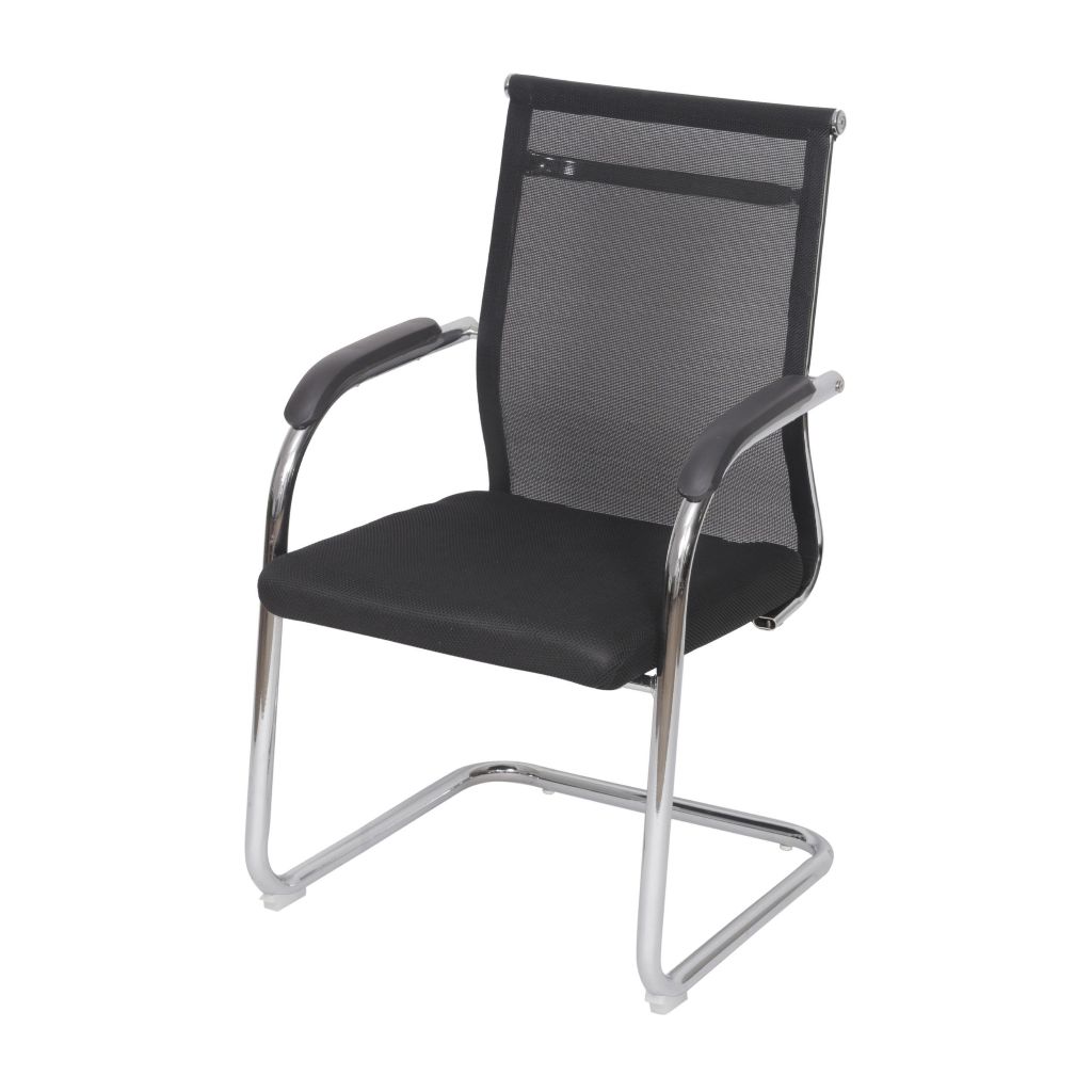Cadeira Escritorio Roma Fixa Preta Sala Reunião – Assento PU, Encosto Tela, Base Cromada Or Design