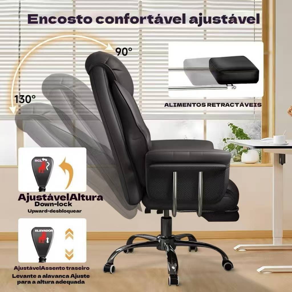 Cadeira Executiva Extra Larga De Couro Para Escritório Com Apoio Os Pés Retrátil E Altura Ajustável