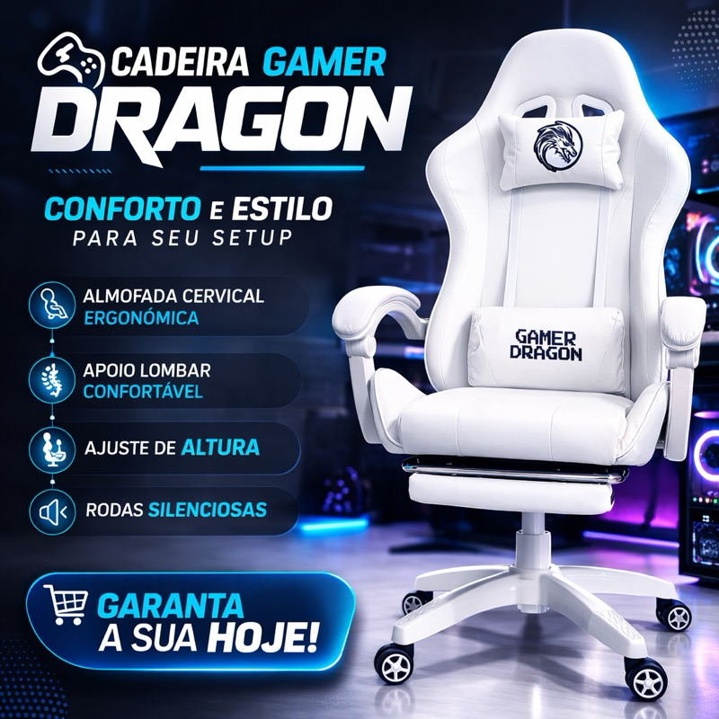 Apresentando a Cadeira Gamer Dragon: A Aliada Perfeita para suas Aventuras Virtuais! Você está pronto para elevar sua experiência de jogo a um nível totalmente novo? Apresentamos a Cadeira Gamer Dragon , a companheira perfeita para todos os entusiastas de jogos que buscam conforto, estilo e desempenho incomparáveis! Conforto Ergonômico de Primeira Classe Nossa cadeira gamer foi projetada com o máximo cuidado para garantir que você possa mergulhar em suas sessões de jogo por horas a fio, sem sentir qualquer desconforto. Com um design ergonômico inteligente, ela se adapta perfeitamente aos contornos do seu corpo, proporcionando um suporte ideal para a coluna vertebral e aliviando a pressão nas costas. Sente-se e desfrute de uma postura correta, mesmo durante as batalhas mais intensas! Estilo Impressionante para os Verdadeiros Campeões A Cadeira Gamer Dragon não é apenas sobre conforto, mas também sobre estilo! Com um design moderno e arrojado, ela se destaca em qualquer ambiente. Seu revestimento em couro sintético de alta qualidade, combinado com detalhes em cores vibrantes, adiciona um toque de elegância e sofisticação ao seu espaço de jogo. Seja o centro das atenções entre seus amigos e mostre a todos que você é um verdadeiro campeão! Desempenho Superior para uma Experiência Imersiva Quando se trata de desempenho, a Cadeira Gamer Dragon não decepciona! Equipada com uma estrutura robusta e resistente, ela suporta até mesmo os jogadores mais apaixonados. Seu sistema de inclinação ajustável permite que você encontre o ângulo perfeito para jogar, relaxar ou até mesmo tirar uma soneca revigorante entre as partidas. Além disso, os apoios de braço acolchoados proporcionam um suporte extra para seus braços, evitando a fadiga muscular. Personalize sua Experiência de Jogo A Cadeira Gamer Dragon oferece uma experiência de jogo personalizada como nenhuma outra! Com ajustes de altura e rotação de 360 graus, você pode adaptar a cadeira às suas preferências individuais. Além disso, os travesseiros lombares e de pescoço removíveis proporcionam um suporte adicional, permitindo que você se concentre totalmente no jogo sem distrações. Eleve seu Jogo a um Novo Patamar com a Cadeira Gamer Dragon! Não perca mais tempo com cadeiras desconfortáveis e sem estilo! A Cadeira Gamer Dragon é a escolha definitiva para os verdadeiros apaixonados por jogos. Garanta agora mesmo a sua e experimente o conforto, estilo e desempenho que você merece. Prepare-se para dominar o mundo virtual e se tornar um verdadeiro campeão! Características Encosto Reclinável: 90° x 135° Peso Máximo Suportado: 120 kg Peso e Dimensões Altura do Encosto: 75 cm Largura da Cadeira: 63 cm Peso da Cadeira: 16 kg Profundidade do assento: 47 cm Largura do Encosto: 52 cm Largura do Assento: 53 cm Altura Mínima do Chão ao Assento: 43 cm Altura Máxima do Chão ao Assento: 53 cm Altura Mínima da Cadeira: 110 cm Altura Máxima da Cadeira: 122 cm *Acompanha Manual e chave para fácil montagem*