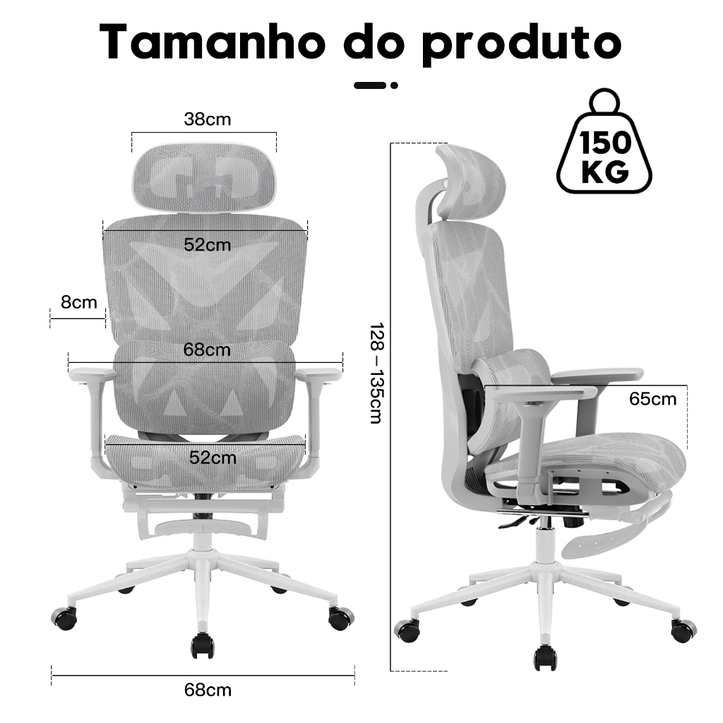 Cadeira Gamer/Home Office Ajustável com Pé, Braço 6D, Suporte Lombar e Cabeça - Ergonômica para Estudo e Trabalho, 150kg
