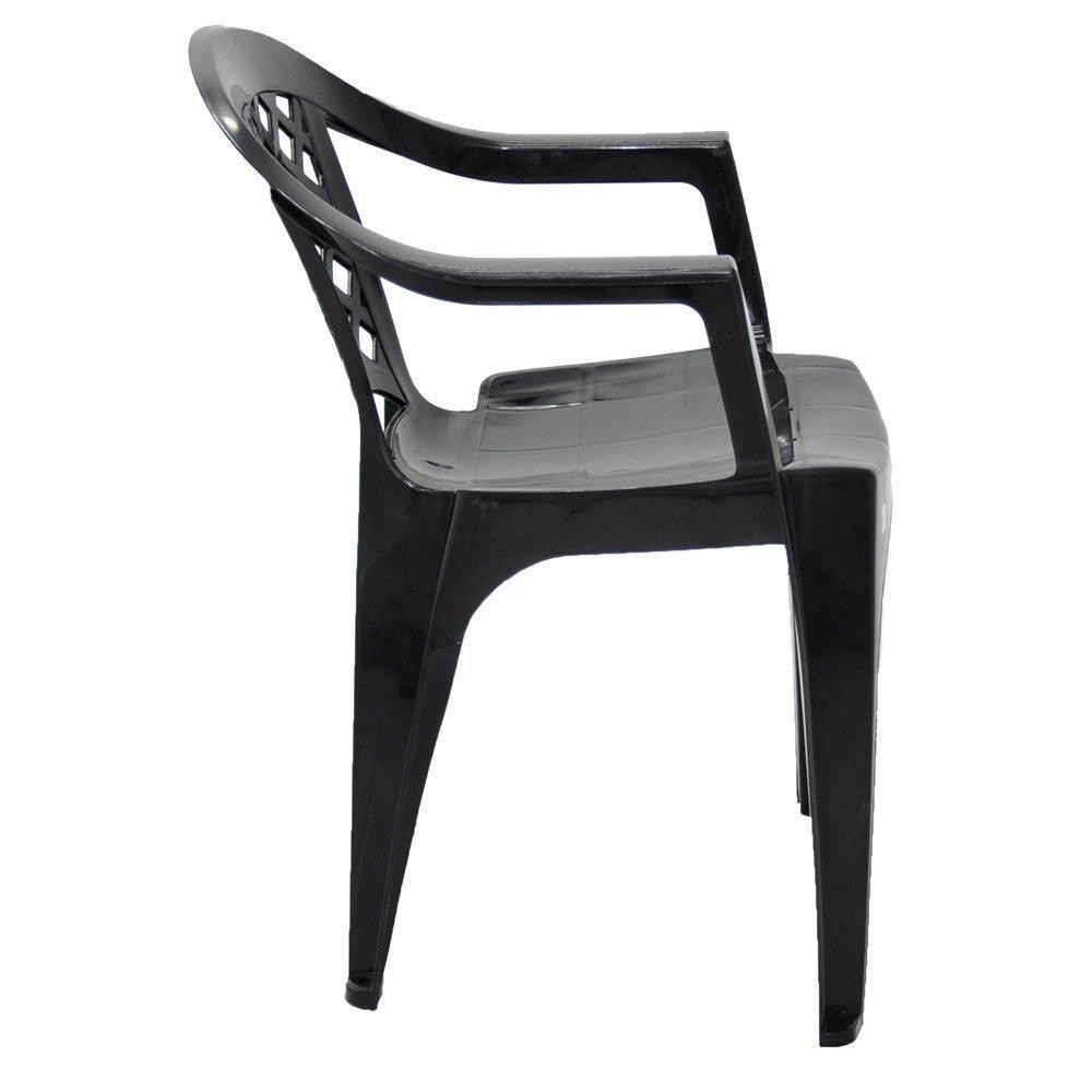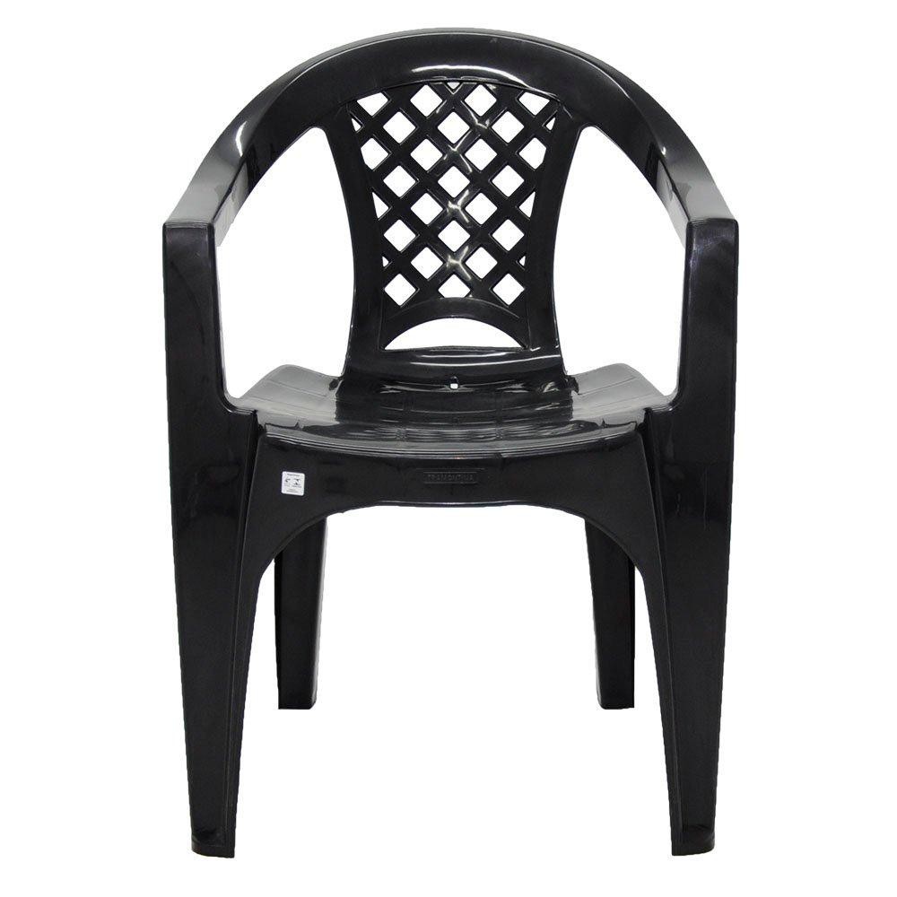 Cadeira Iguape Preta com Braços Suporta 154kg Piscina Praia Camping - Tramontina