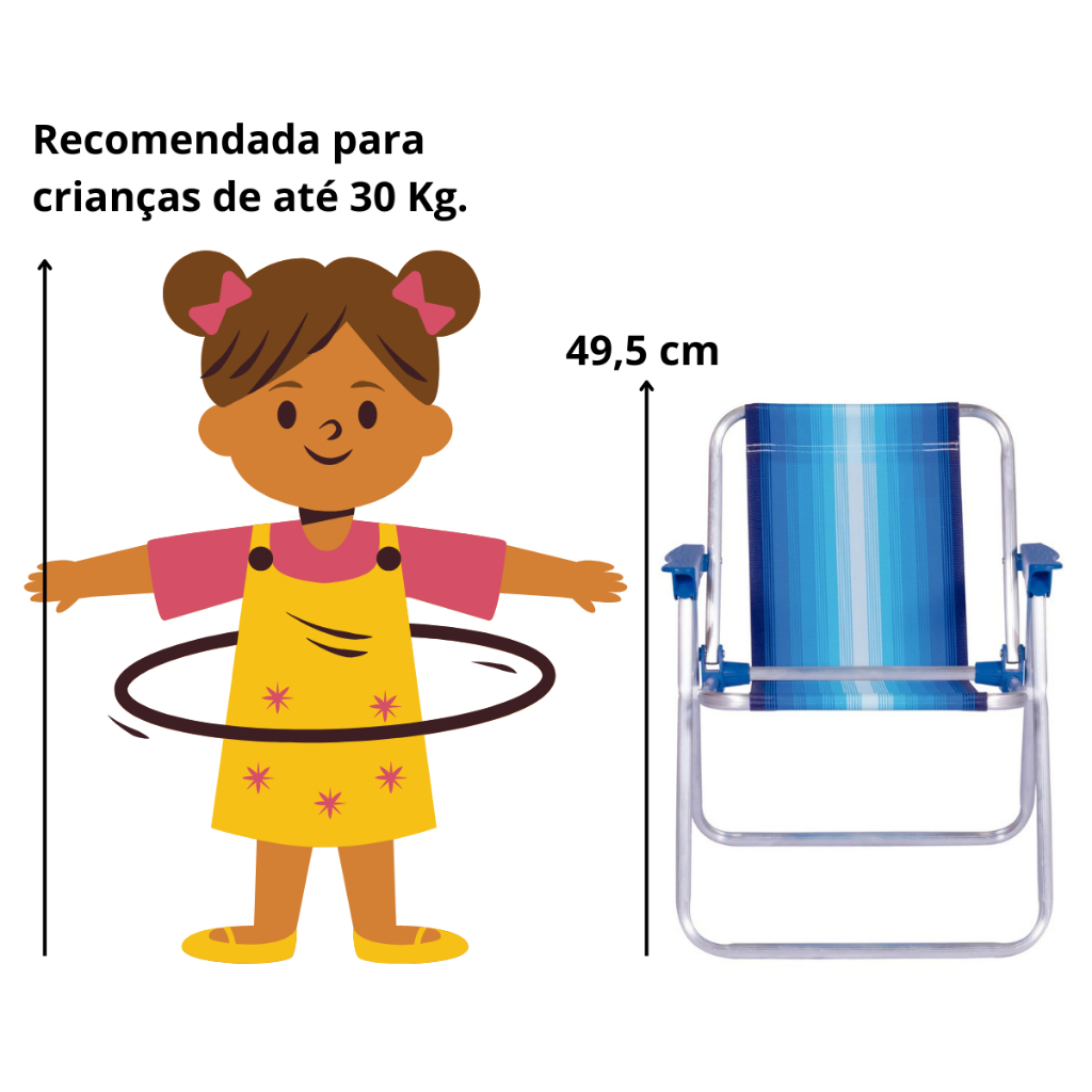 Cadeira Infantil de Praia Alta Cores Dobrável Alumínio Mor