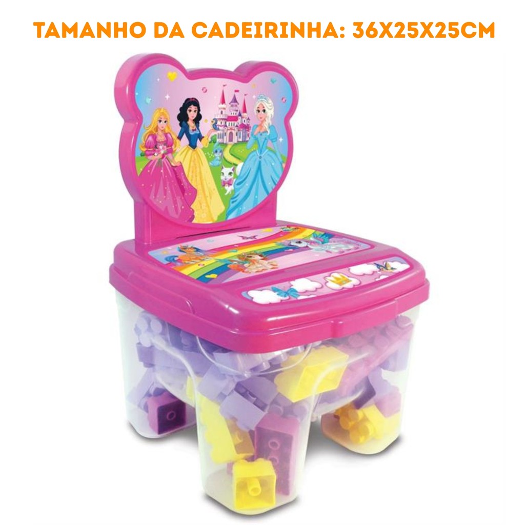 Cadeira Infantil Princesa Brinquedo Blocos 24pçs Bebe Menina