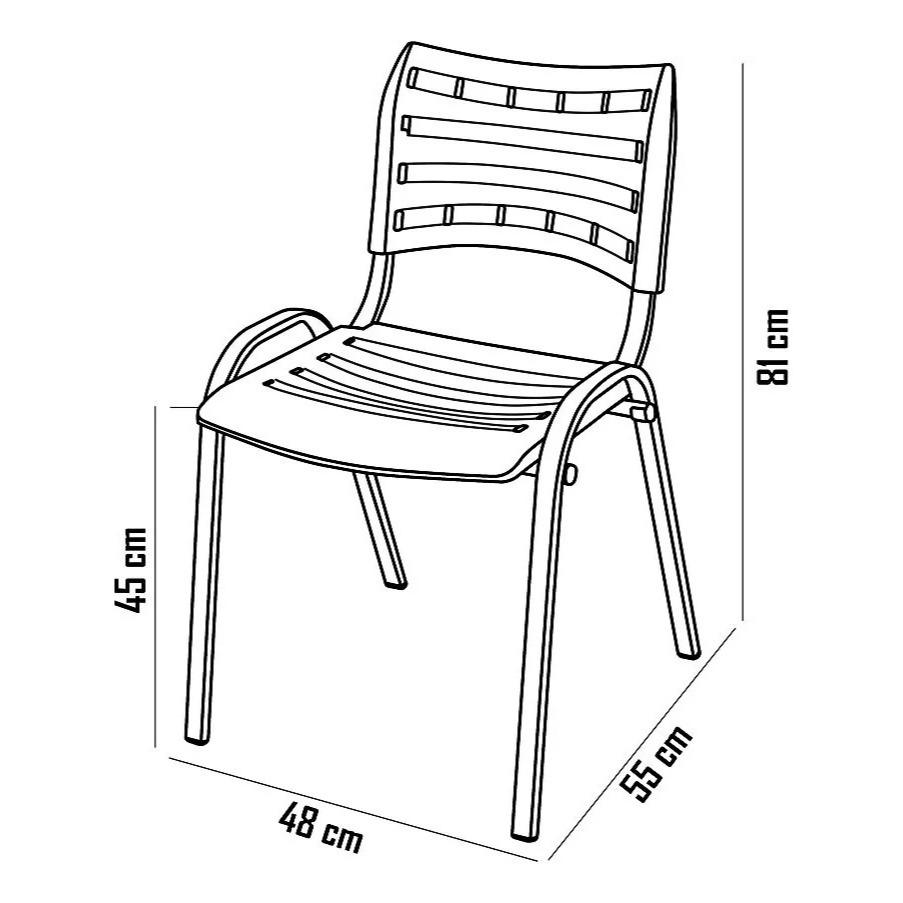 ATENÇÃO: Caso precise de mais unidades, efetuar compras separadamente, conseguimos enviar no máximo 1 kit por compra devido as dimensões do produto. A Cadeira ISO é um produto versátil e durável, projetado para atender às necessidades de lanchonetes, bares, restaurantes, igrejas e outros estabelecimentos. Sua estrutura é feita de aço resistente, proporcionando estabilidade e segurança aos usuários. O assento e o encosto são fabricados em plástico de alta qualidade, garantindo conforto e facilidade na limpeza. Além disso, a cadeira ISO possui um design moderno e elegante, que se adapta facilmente a diferentes ambientes. Com sua combinação de materiais resistentes e funcionalidade, a cadeira ISO é uma excelente opção para quem busca qualidade e praticidade. Dimensões: Altura total: 81cm; Altura até o assento: 45cm; Profundidade: 55cm. Especificações: Estrutura dos pés: tubo oblongo 0,90mm; Estrutura do encosto: tubo oblongo 1,20mm; Pintura eletrostática; Assento e encosto de plástico de cores variadas; Cadeira empalhável; Suporta até 120kg; Produto pré montado, apenas necessário realizar a montagem do encosto. Instruções de limpeza: limpar com pano úmido, detergente neutro ou aspirador de pó. Cor do produto: as cores impressas apresentam uma tonalidade próxima ao produto, podendo haver variações entre a imagem e o padrão original. Montagem: Não montamos os produtos. O serviço de montagem deve ser contratado pelo cliente. Atenção: Não nos responsabilizamos, no ato da entrega, por desmontagens, subir escadas, elevadores ou transporte por guincho para apartamentos. Eventuais despesas são de responsabilidade do cliente. Confira as dimensões deste produto e certifique-se de que passará normalmente por supostos elevadores, portas, escadas e/ou corredores em forma da letra "S".