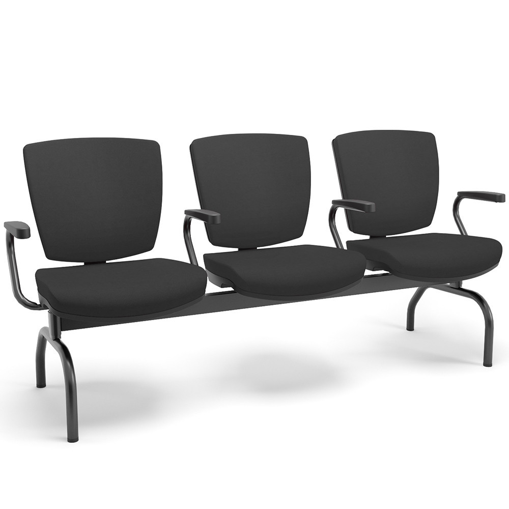 Cadeira Longarina 3 Lugares Aeroporto Recepção Preto Baixa Flexi P03 Vinil Preto - Lyam