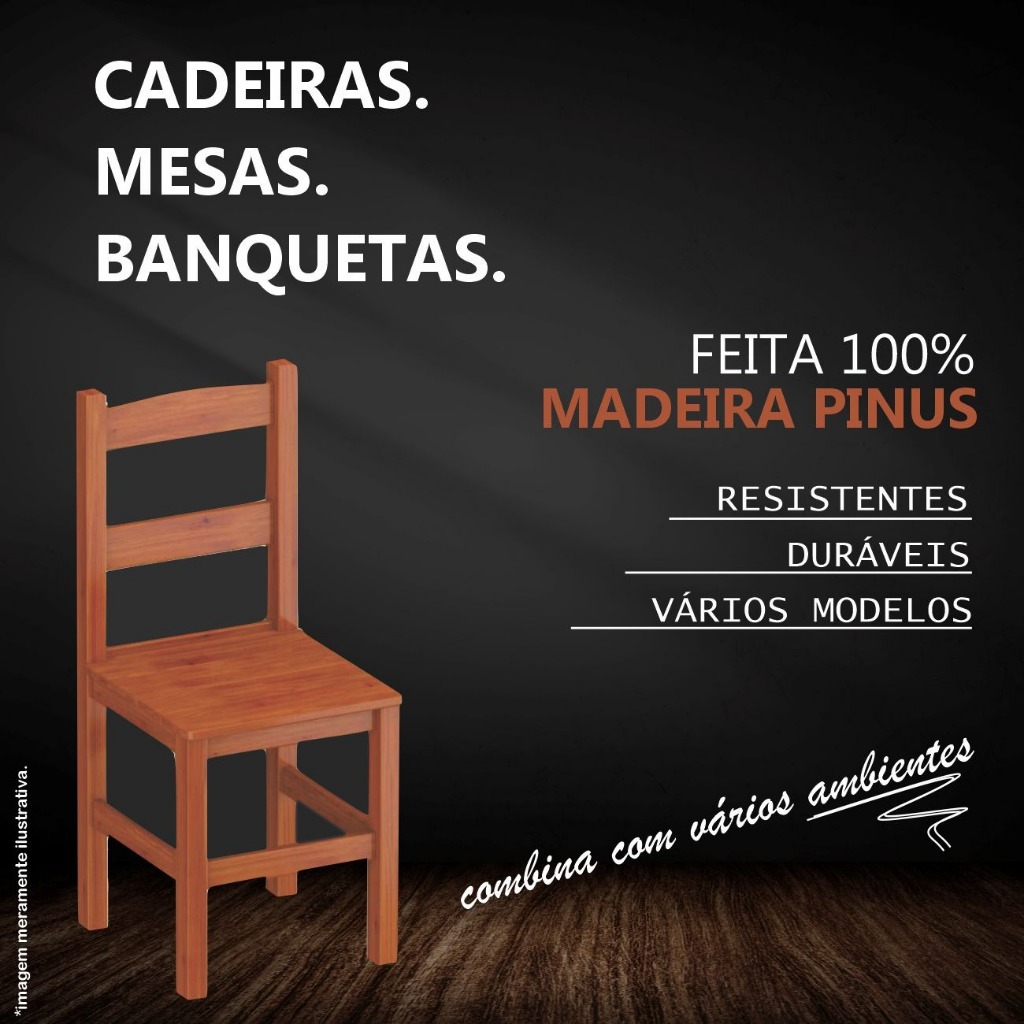 CADEIRA IMPÉRIO DESMONTADA - 2 UNIDADES. VARIAÇÕES DE CORES: IMBUIA, MEL, CASTANHO, NATURAL E TABACO ** PRODUTO ENVIADO DESMONTADO!! ----- Contém 2 cadeiras por embalagem! LIMITE DE 3 KIT (6 CADEIRAS) POR PEDIDO DEVIDO AS DIMENSÕES (LIMITE PELAS DIMENSÕES ACEITAS PELA TRANSPORTADORA). PODERÁ ESCOLHER ATÉ 3 UNIDADES POR COMPRA, COM 2 CADEIRAS POR EMBALAGEM (TOTAL DE 6 CADEIRAS). MATERIAL FEITO COM MADEIRA DE REFLORESTAMENTO DE ÓTIMA QUALIDADE, TORNANDO O PRODUTO MUITO RESISTENTE E DIFERENCIADO, FINALIZADO COM FINO ACABAMENTO. A linha de cadeiras maciças Império, além de serem confeccionadas com madeira de primeira linha, possui uma pintura reforçada com os mais modernos produtos do mercado, afim de garantir maior resistência aos desgastes do uso diário. Sendo assim, a camada seladora gera uma proteção contra riscos e permanência do brilho. Com fino acabamento, o ambienta tornará moderno, aconchegante e elegante. DADOS EMBALAGEM (MEDIDAS): 16 CM ALTURA, LARGURA 44 CM 93,5 CM PROFUNDIDADE 02 produtos por embalagem PRODUTO DESMONTADO PRODUTO UNITARIO SEM EMBALAGEM ALTURA TOTAL: 90 CM ALTURA ATÉ ASSENTO: 45 CM LARGURA: 39 CM PROFUNDIDADE: 41 CM ESPESSURA MADEIRA - ESTRUTURA: bitola 4,5 x3,5 cm PESO PRODUTO: 4,5 kg / peso 2 cadeiras desmontas e mais embalagem 9,700 kg PESO SUPORTADO: 150 kg ACABAMENTO: Acabamento em verniz PU COR PREDOMINANTE: MATERIAL DA TINTA: SELADORA NITRO, VERNIZ PU TIPO DE BRILHO: BRILHO ACETINADO , TAMBEM PODE SER VENDIDA NO CRU (NATURAL) RESISTÊNCIA VERNIZ/PINTURA (SOL, RISCOS, UMIDADE, ...): PRODUTO FEITO EM MADEIRA, NÃO É RECOMENDADO FICAR EXPOSTO AO SOL , NÃO LAVAR, NÃO PASSAR INSTRUMENTOS ÁSPEROS DICAS PARA LIMPEZA DO PRODUTO: PANO SEMI-SECO, NAO UTILIZAR SOLVENTE , NÃO UTILIZAR MATERIAL ÁSPERO ------- TIPO MONTAGEM E INFORMAÇÕES BÁSICAS: MONTAGEM COM COLA E PARAFUSO ** MONTAGEM SIMPLES!! RECOMENDAMOS QUE A MONTAGEM SEJA FEITA POR UM PROFISSIONAL CAPACITADO! Não nos responsabilizamos por danos em erros de montagem. Sendo assim, orientamos a contratação de um profissional por conta do cliente. Qualquer dúvida estaremos a disposição! Cada pedido no carrinho contém 2 unidades (por embalagem) Desmontada! Pode ser adicionado até 3 pedidos na mesma compra devido as dimensões permitidas pela transportadora!