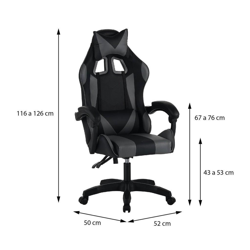 A Cadeira Gamer Hawker é extremamente confortáveis com almofadas de lombar e pescoço, possui inclinação de 170o, mecanismo com regulagem de altura, braços acolchoados, rodas em PU que não riscam o piso e base reforçada. Kit: Não Peso (kg): 10.8 Garantia: 06 Meses Altura (cm): 1.26 Giratória: Sim Empilhável: Não Largura (cm): 52 Possui LED: Não Possui Rodízio: Sim Suporta Até (kg): 120 Tipo de Pistão: Classe 2 Possui Massagem: Não Profundidade (cm): 50 Serviço Montagem: 114259443 Origem do Produto: Importado Ambiente Principal: Escritório Encosto Reclinável: Sim Enchimento do Assento: Espuma D-18 Possui Apoio para Braços: Sim Possui Certificação ABNT: Não Braço com Ajuste de Altura: Não Possui Regulagem de Altura de Assento: Sim Possui Regulagem de Altura do Encosto: Não Tipo de Mecanismo da Cadeira: Back System (SRE) Tipo de Cadeira de Escritório: Cadeira Gamer Marca: OR Design Cor: Preto/Cinza Cor do Produto: Cinza Itens Inclusos: 1 Cadeira, Kit Ferragens e Manual de Montagem. Cor Predominante: Cinza Quantidade do Produto: 1