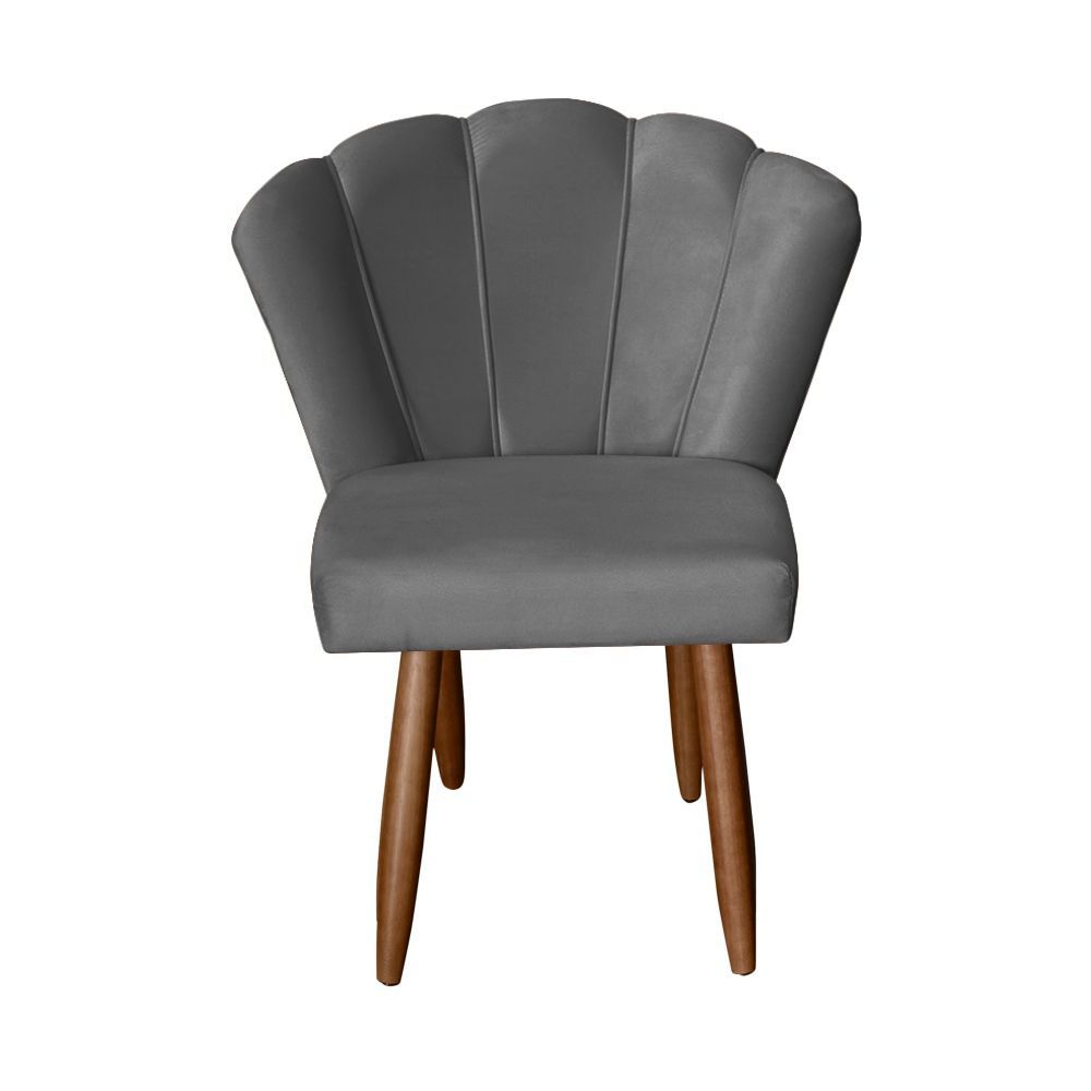 Cadeira Poltrona Decorativa Pétalas De Flor Sala De Estar Recepção Decoração Design Veludo Cinza
