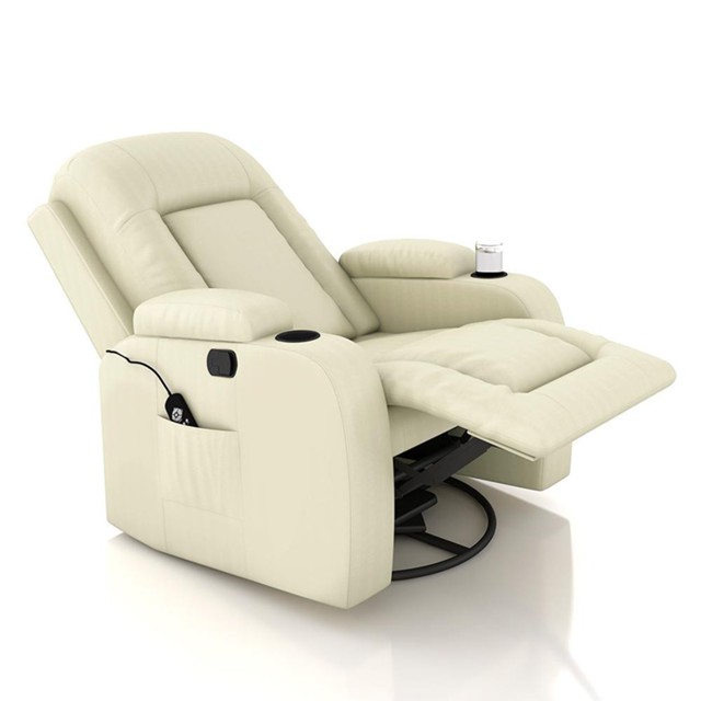 Cadeira Poltrona do Papai Reclinável Austin Massagem e Aquecimento Giratório Balanço PU Bege G31